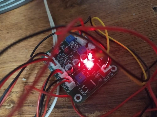 1. Желательно сразу здесь же, недалеко заказать трансформатор на 12 вольт и 5-8 ватт нагрузки, т.к. плата питается переменным током. 2. Плата имеет крайне низкую чувствительность линейного входа, корректно запустилась только с наушникового выхода телефона. 3. При подключению к звуковой карте ПК, необходимо дополнительно усилить выходной сигнал платой предусилителя 2х3ватта.
