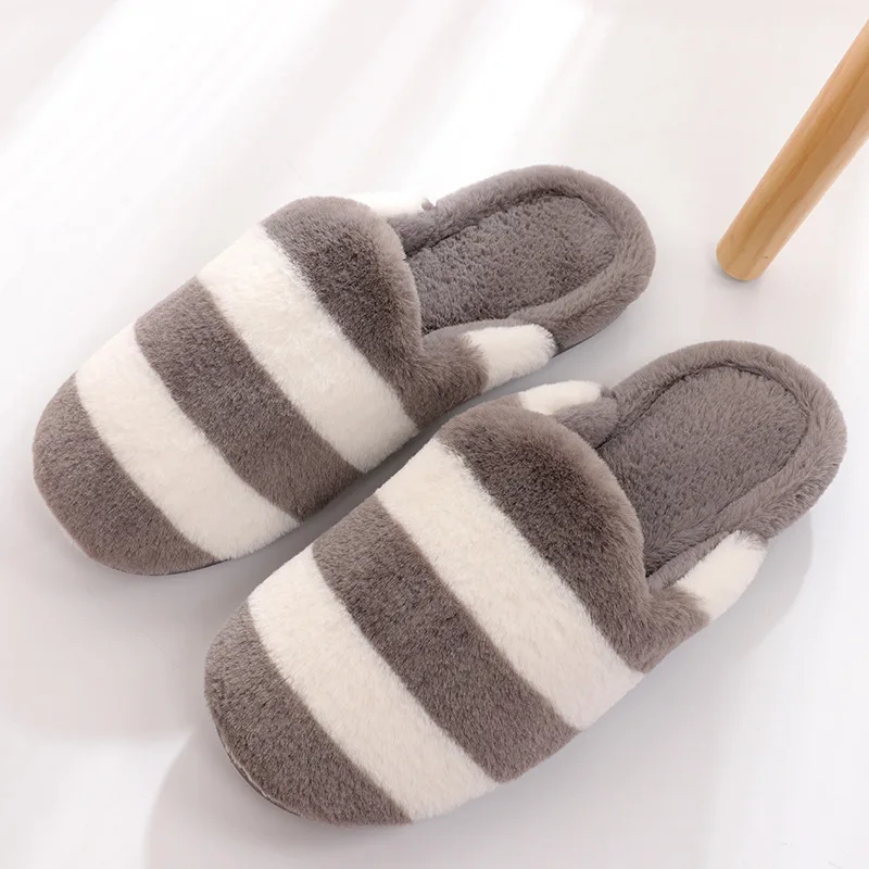 Шлепанцы мужскиеженские в полоску, теплые тапочки, Нескользящие, на платформе, удобная зимняя обувь, 2018