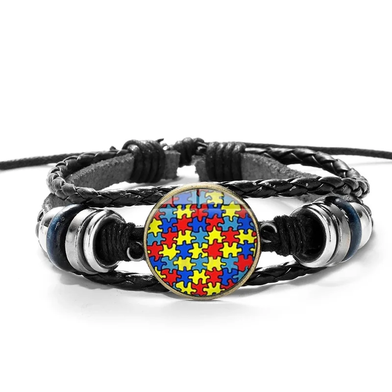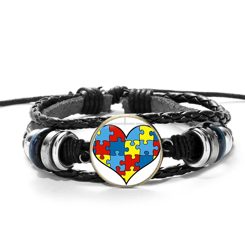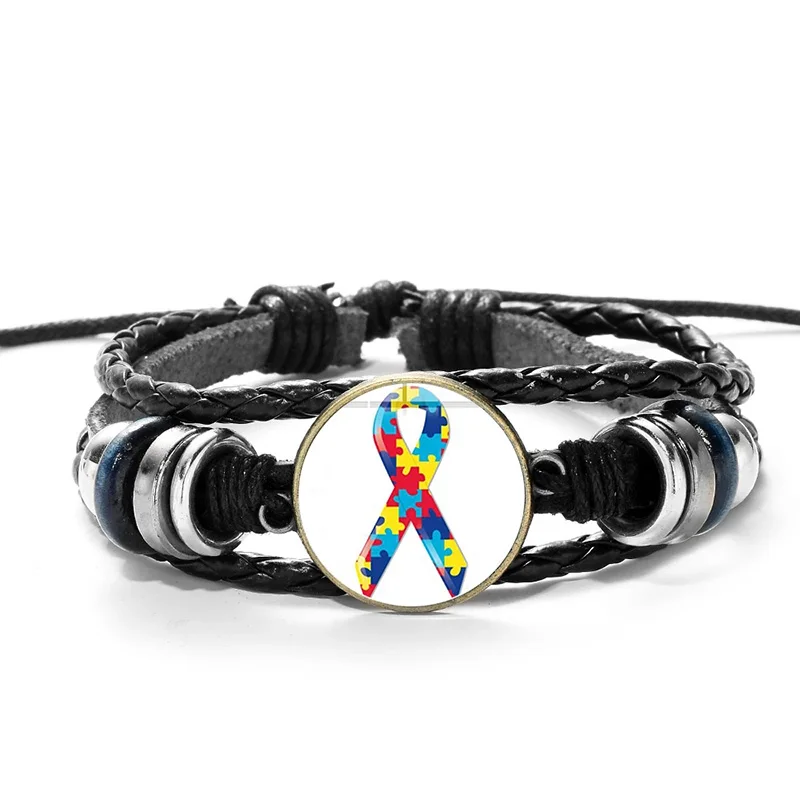 Браслет для осведомленности об аутизме, пазл из красной ленты, стеклянный кабошон, регулируемый, помогает поднять осведомленность об аутизме