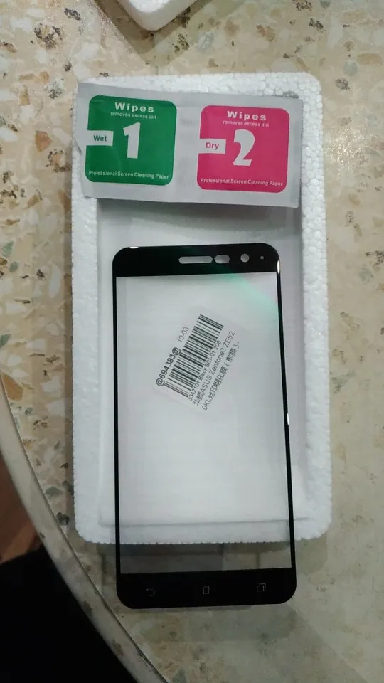 Защитное стекло брала на Asus zenfone 3 ze520kl.Стекло не много короче чем дисплей телефона,вроде мелочи но всё ровно не приятно.Пришло в коробке из пенопласта,защитное стекло идет в чехле,2 салфетки.С продавцом не общалась.