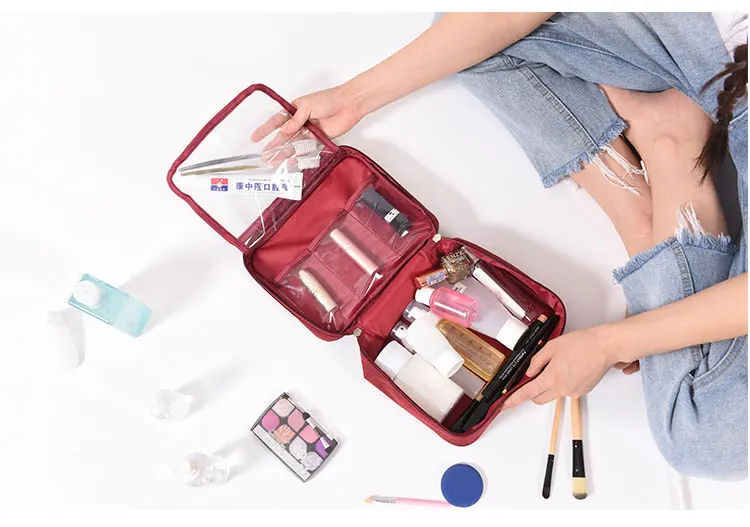Профессиональный Чехол для макияжа, женская косметичка большой емкости, водонепроницаемый чехол для макияжа, полиэфирная дорожная Сумочка для туалетных принадлежностей, чехол для красоты
