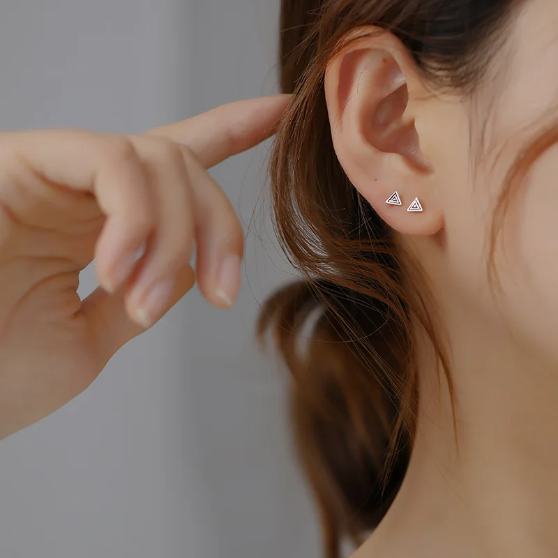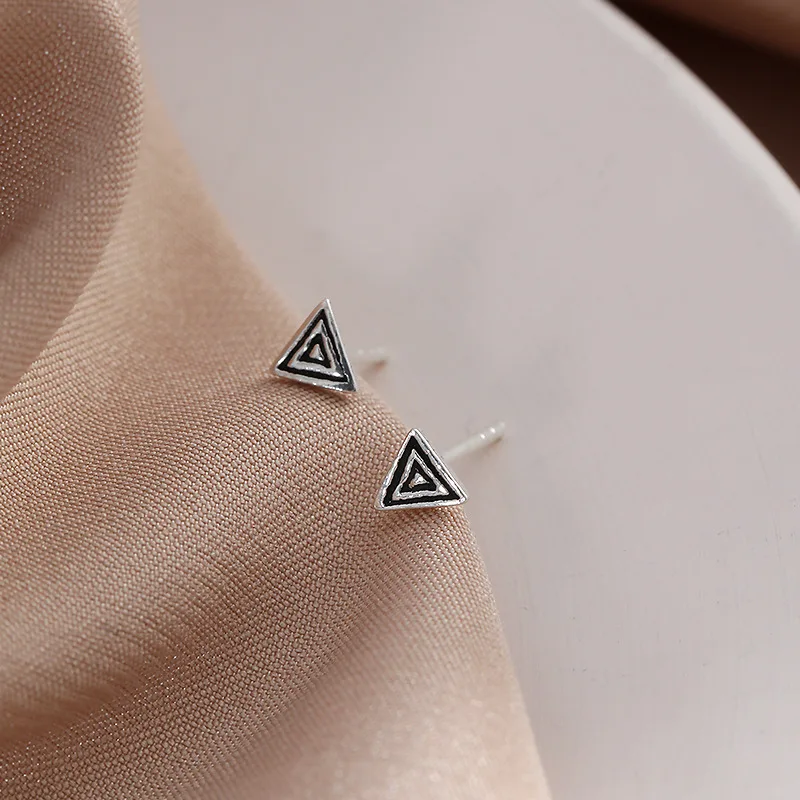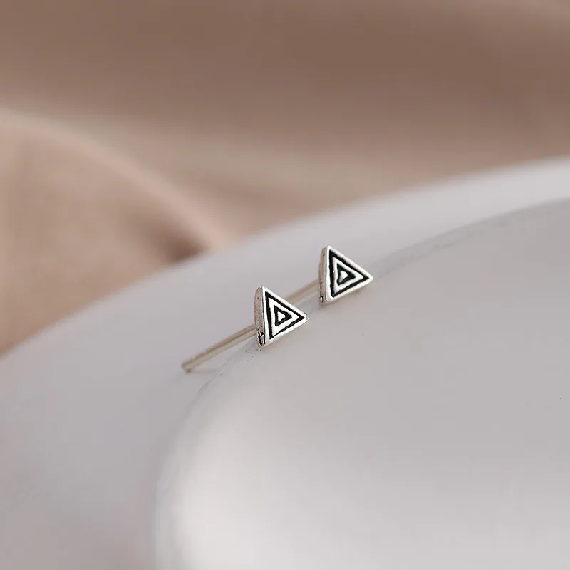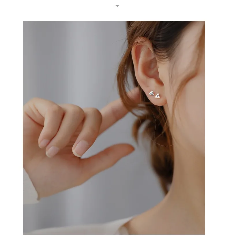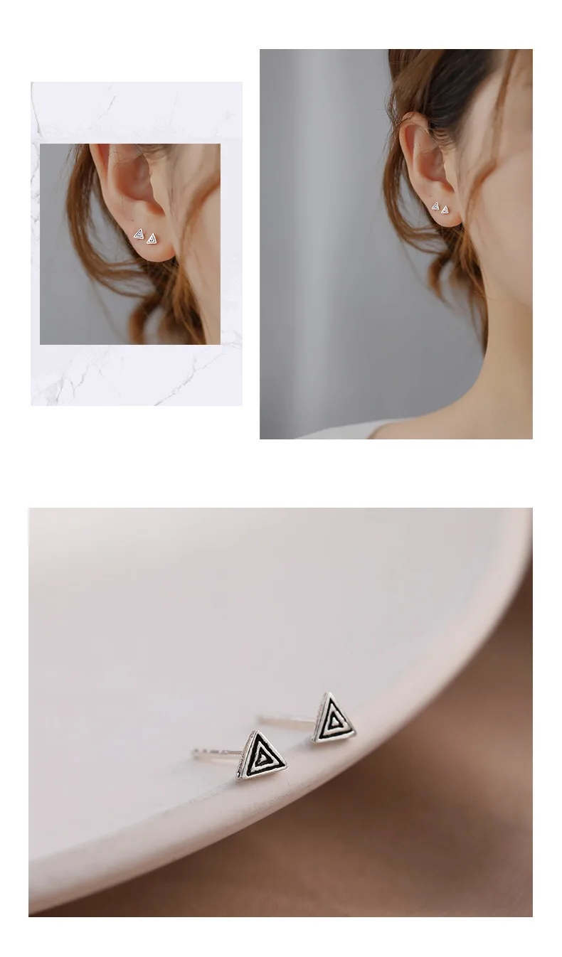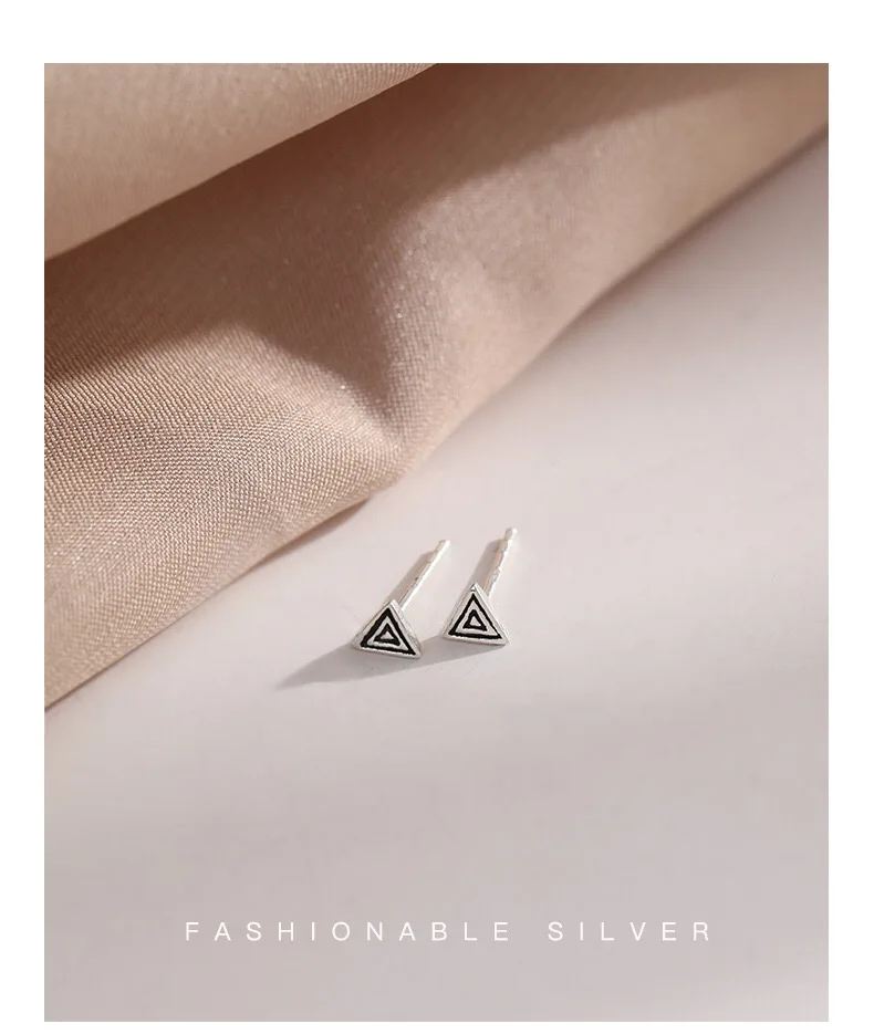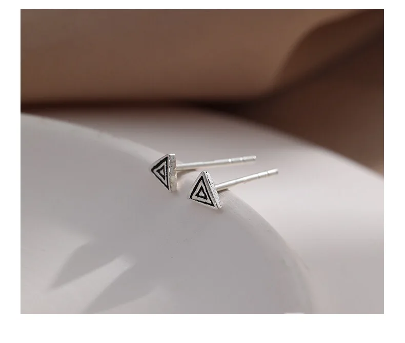 Серьги из стерлингового серебра 925 пробы, мини-треугольник, стерео, маленькие квадратные серьги для мальчиков и девочек, ювелирные украшения для ушей