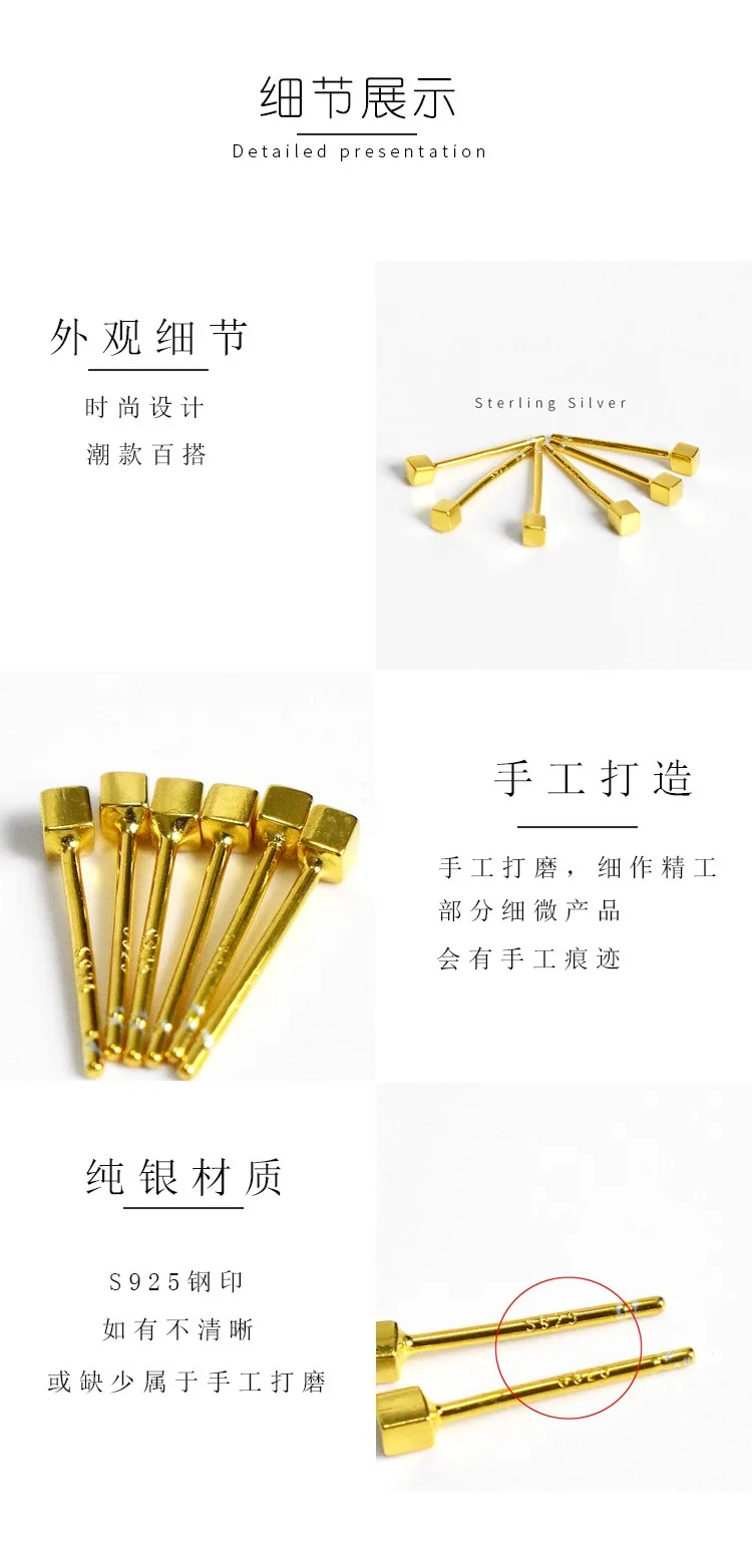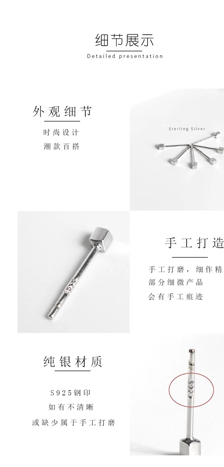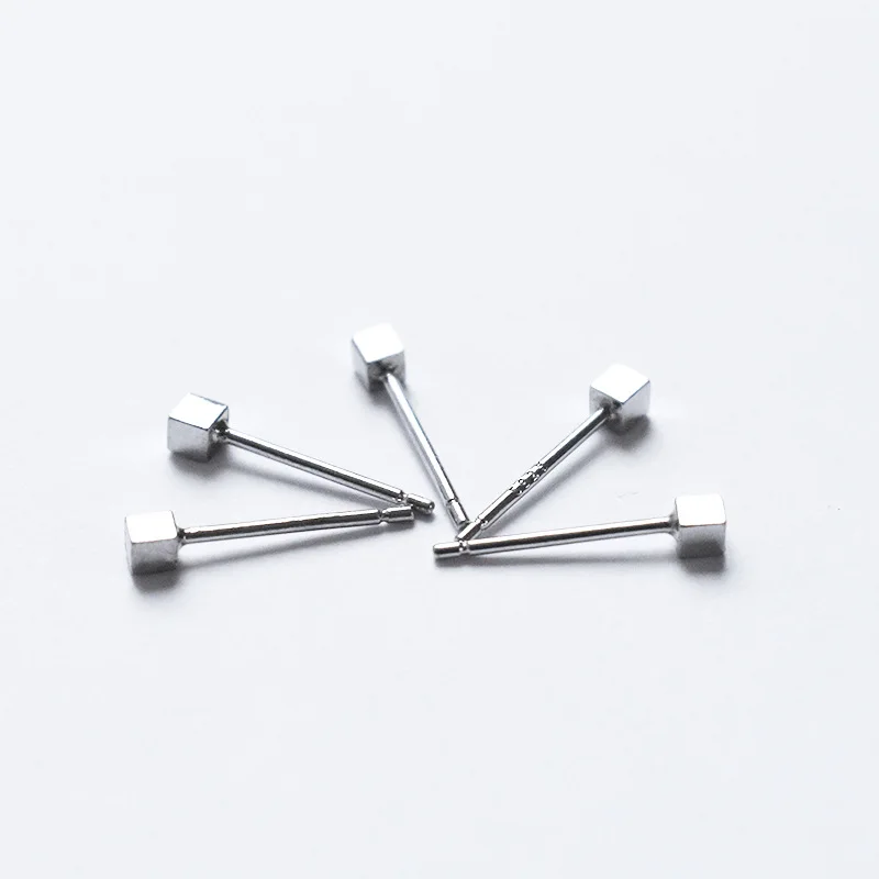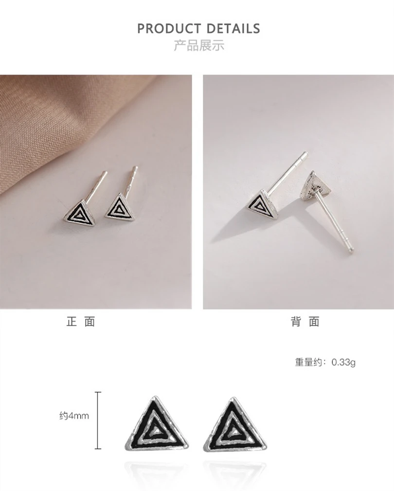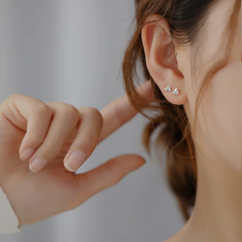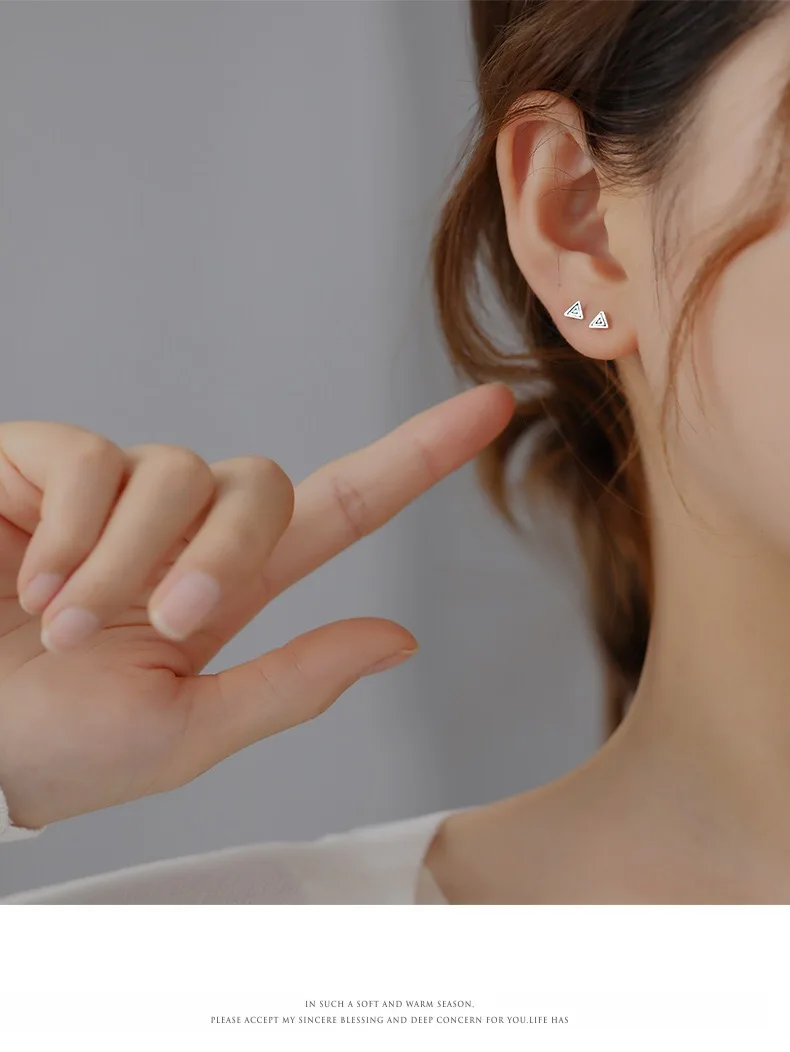 Серьги из стерлингового серебра 925 пробы, мини-треугольник, стерео, маленькие квадратные серьги для мальчиков и девочек, ювелирные украшения для ушей