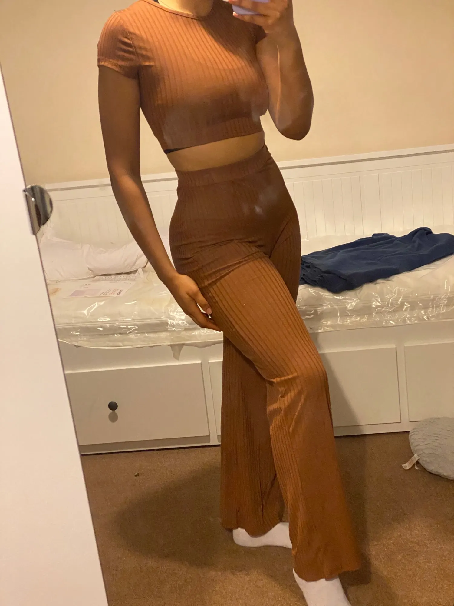 на 44 взяла М, верх подходит, низ большеват, пояс высоко , придётся опускать.