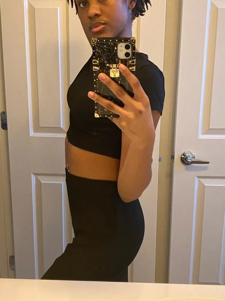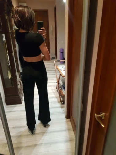 Это мило. Я выбрал черный, но по какой-то причине он выглядит как темно-синий. Я не возражаю. Штаны широкие и длинные, но я на 5 '2 ”, так что, безусловно, они будут довольно длинными на мне, lol, мне нравится наряд, он очень милый. Не могу дождаться, когда его наденете