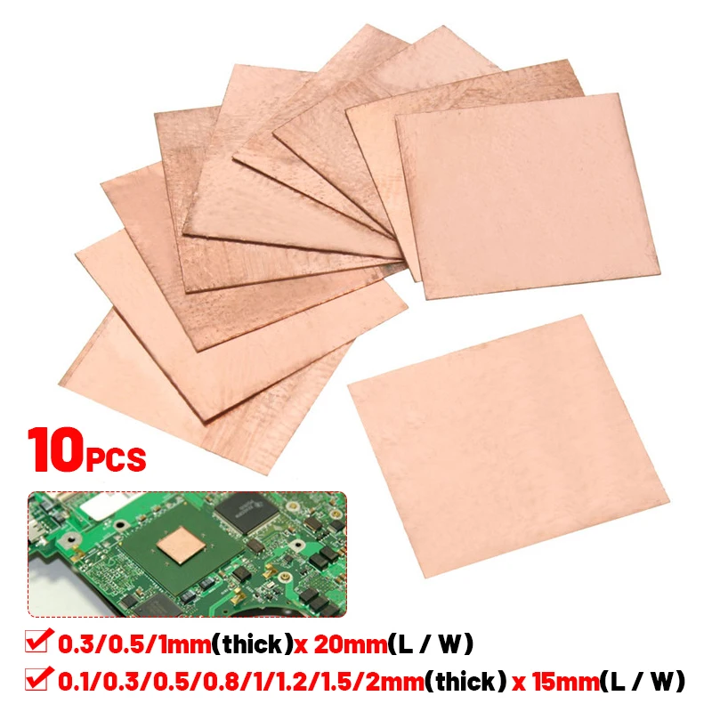Медная Пластина для ноутбука, 0,1 мм, 0,3 мм, 0,5 мм, 0,8 мм, 10 шт.