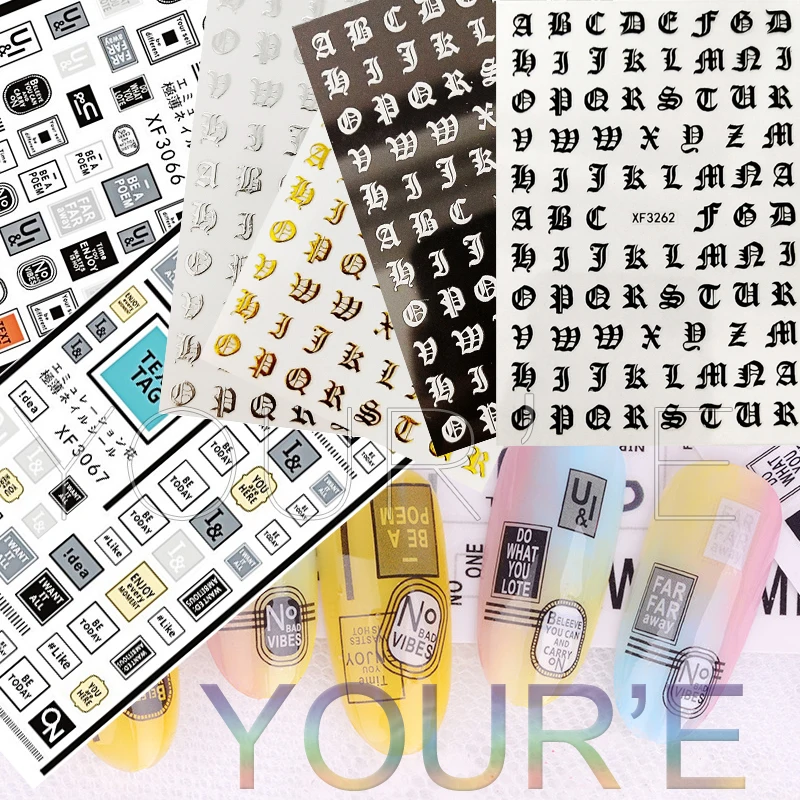 Текстовая бирка 3D, золотые, черные, белые наклейки для ногтей, самоклеящиеся амулетные этикетки сделай сам, буквенные наклейки для ногтей, переводки для маникюра, переводки для ногтевого дизайна