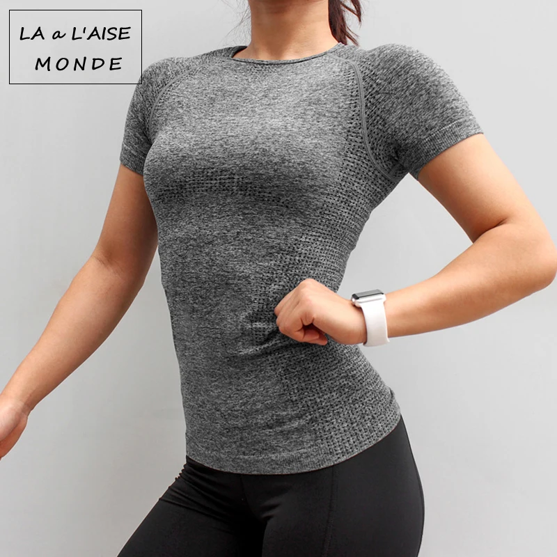 Женская бесшовная спортивная рубашка для фитнеса, спортивная одежда для женщин, топ для бега в тренажерном зале, топ с коротким рукавом для йоги, топы для тренировок, спортивные костюмы