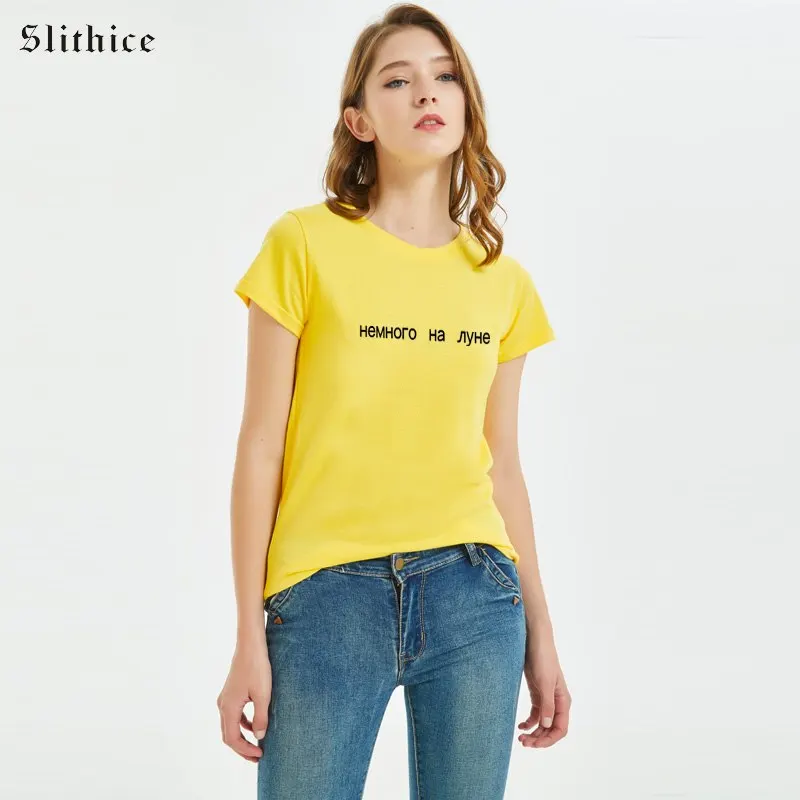 Slithice летняя новая женская футболка с надписью в русском стиле, футболка с буквенным принтом, женские топы, Повседневная футболка с коротким рукавом, рубашка