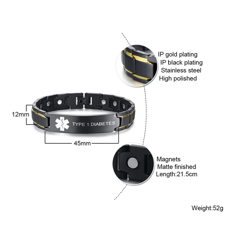 Мужские браслеты с био-энергией, медицинское оповещение при диабете, индивидуальная гравировка имени болезни, аксессуары для запястья, тип 1