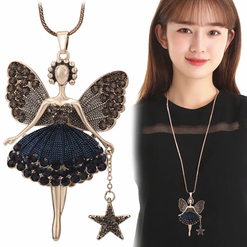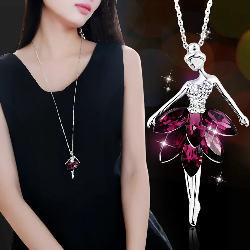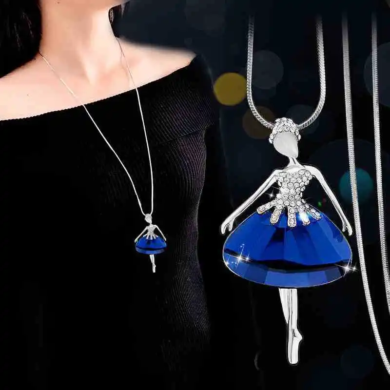 Женское ожерелье с подвеской Балерина LWMMD, серебристое ожерелье с синими и серыми кристаллами, сказочные украшения