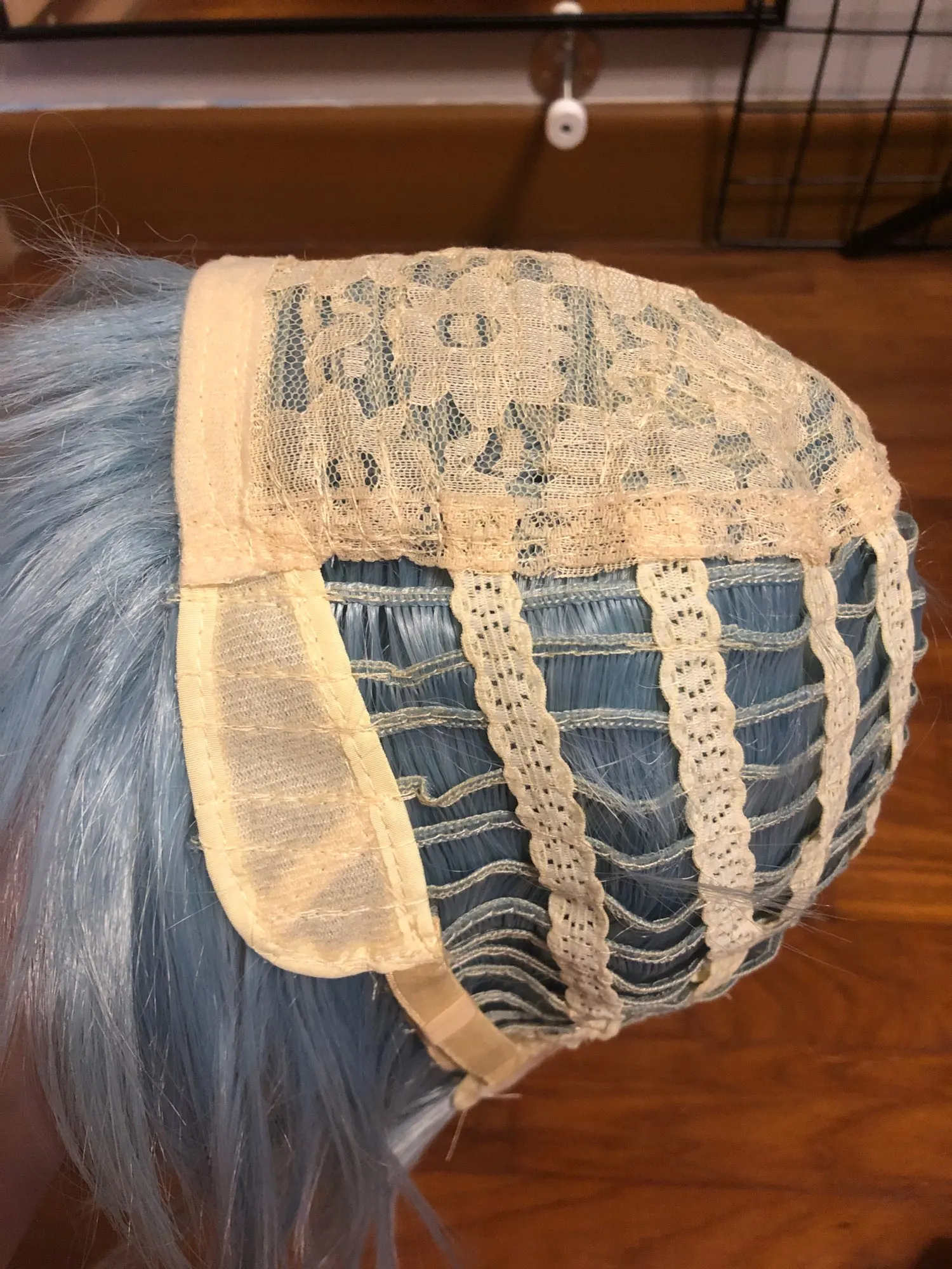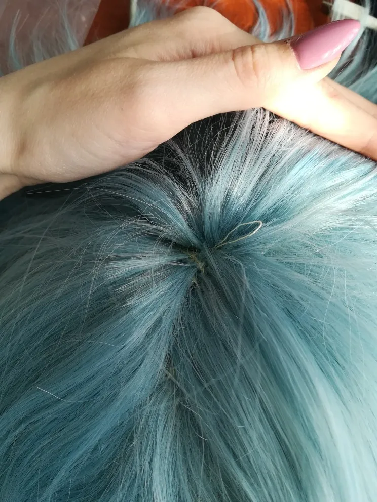 шел по времени средне, не сильно долго. цвет скорее голубой, а не серо-голубой. линяет. затылок лысоват. очень расстроила макушка - прошита паршиво, торчат нитки. придётся помучиться с уклалкой, чтоб спрятать косяки