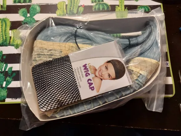 Парик прибыл в Испанию в расчетное время. Цвет красивый и идеально подходит для Ши-гараки, у него достаточно волос спереди и сзади, и он немного раздавлен коляской. Для 100% верного косплея я думаю, что мне придется немного стилизовать этот парик, но это хорошая основа.