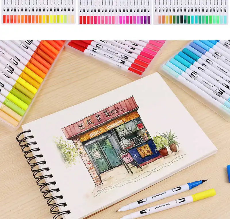 4872100 Цвета тонкой лайнер для рисования картины акварельные Маркеры Ручка арт двойной наконечник кисть граффити ручка школьные принадлежности 04350