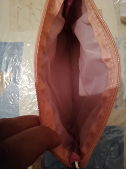 Хорошенькая косметичка, все необходимое помещается. Подклад внутри розового цвета.