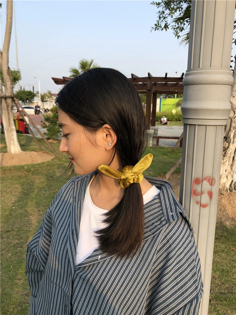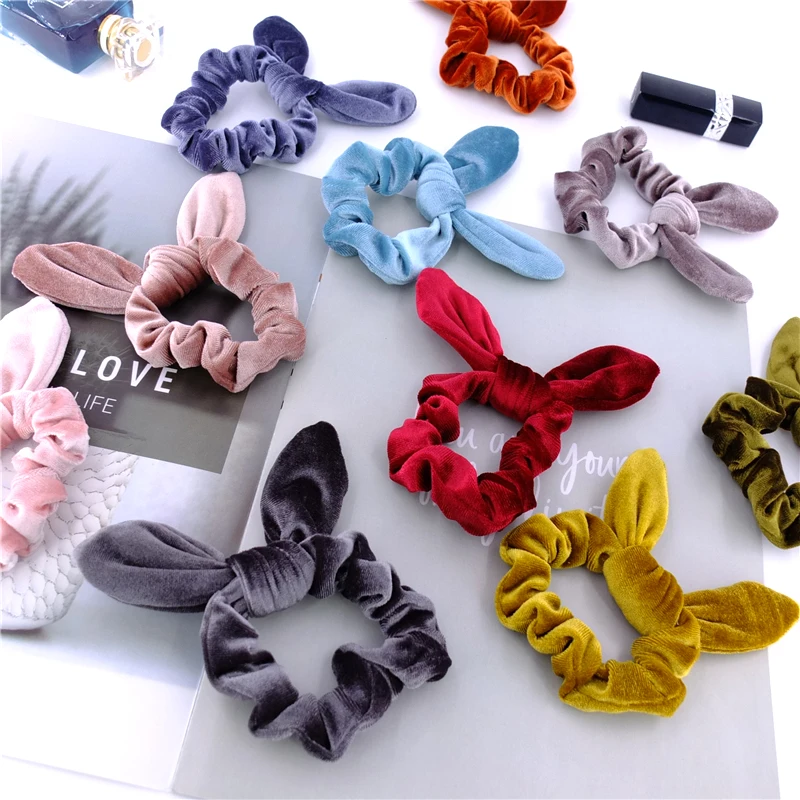 Бархат резинка для волос для девочек и женщин, для ухода за волосами, отражающих последние тенденции Галстуки хвост держатель резинка для волос бархатная заячьими ушками и бантом для маленьких девочек аксессуары, ленты для волос
