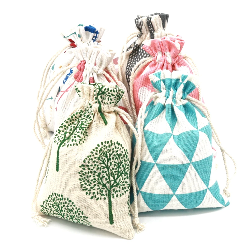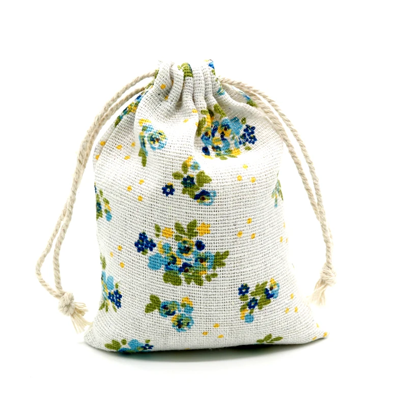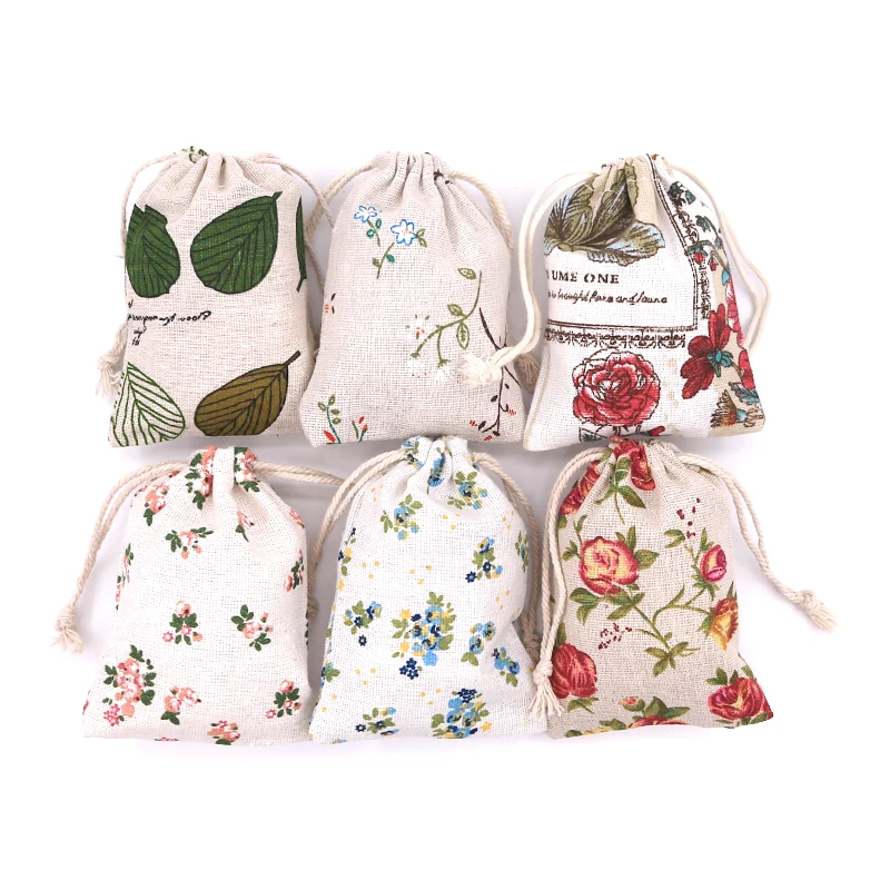 Оптовая продажа 10x14 см 100 штпартия джутовые хлопковые мешочки для хранения ювелирных изделий цветочный узор Подарочная упаковка дорожная тканевая сумка