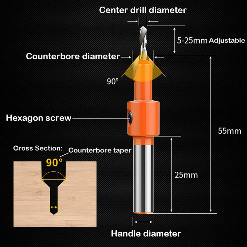 Сверло для зенковки из быстрорежущей стали, винт для деревообработки, фаска, Быстросменные сверла для отверстий по дереву, Круглый хвостовик, для работы по дереву и пластику