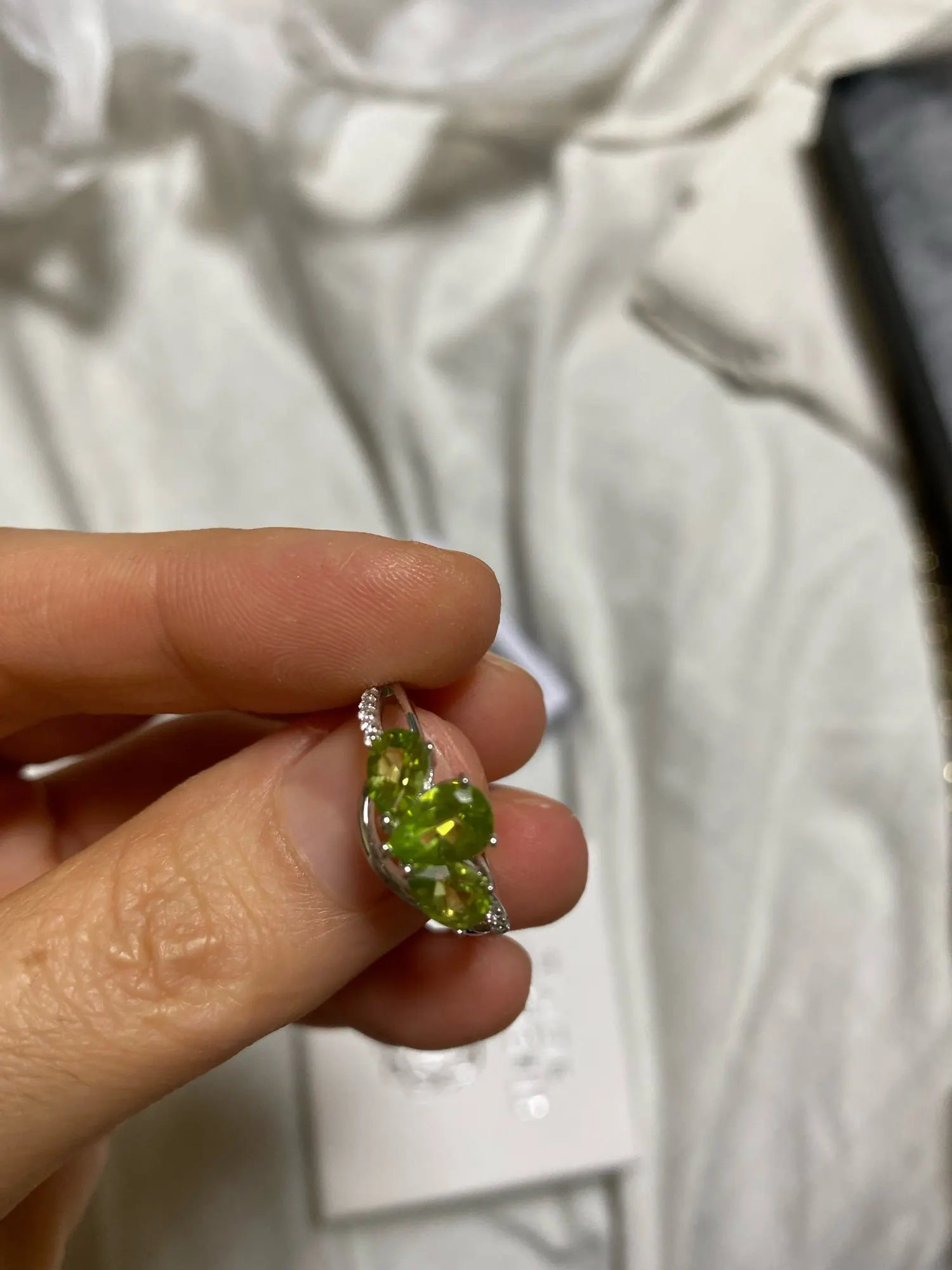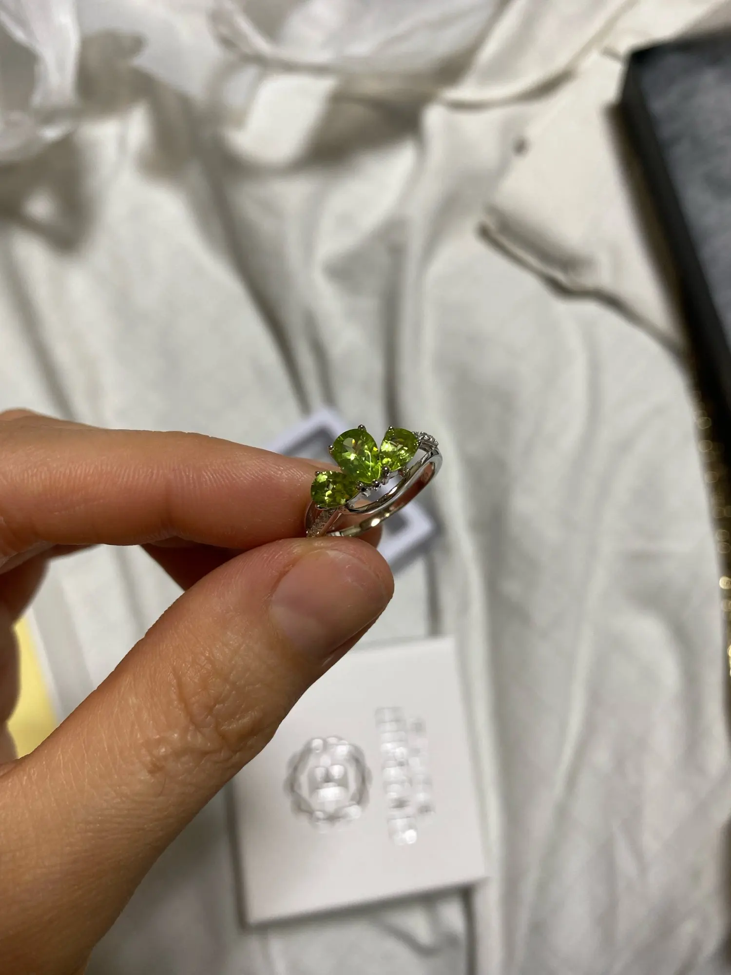 Женское кольцо из серебра пробы, с натуральным зеленым перидотом