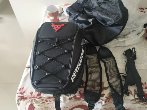 Сам рюкзак не плохой,не понравилась фурнитура кольца,карабины пластмасса ,лямки вообще убожество.Использовать только на моте,в качестве рюкзака я думаю будет не удобен,замок открывается снизу в вертикальном положении на весу залезть будет неудобно,только в горизонтальном.Вообщем как бардачек сойдёт