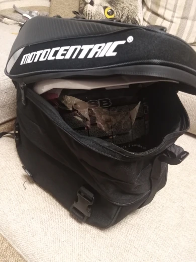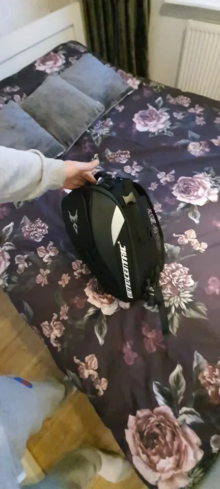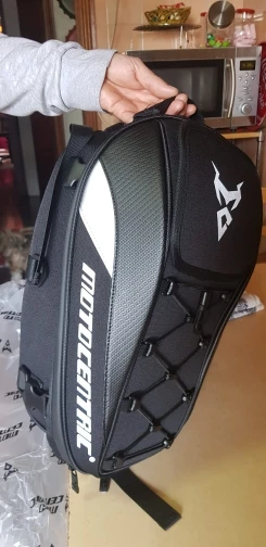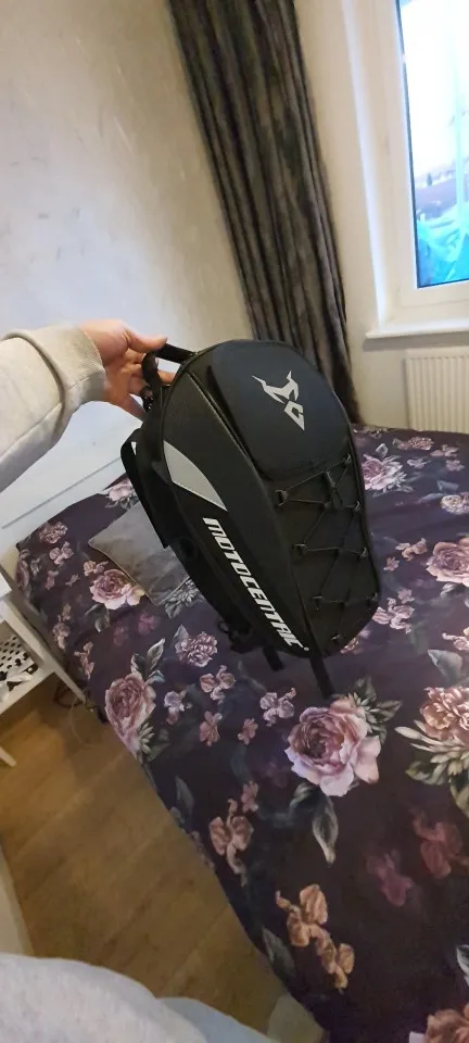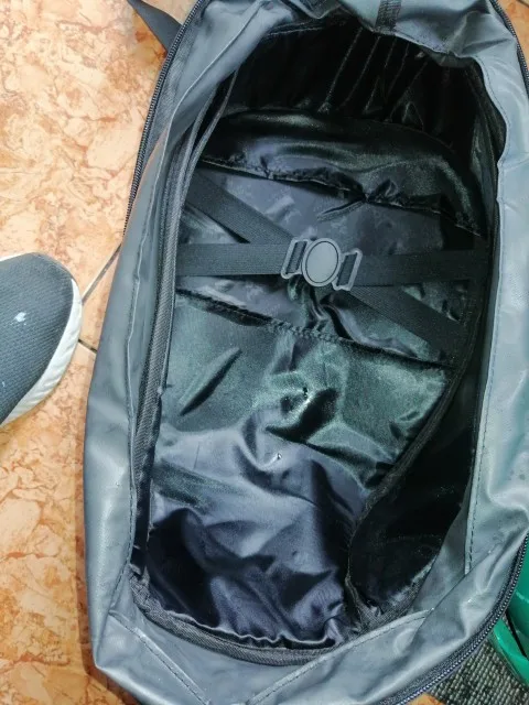 Сумка хорошая, эндуро шлем размера L влазит в притирку, лямки для ношения на спине выглядят слабоватыми, с чем-то тяжёлым в сумке я ими пользоваться не рискну, но на заднее седло мотоцикла или на бак сумка самое оно, рекомендую.