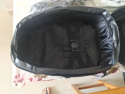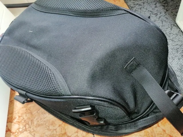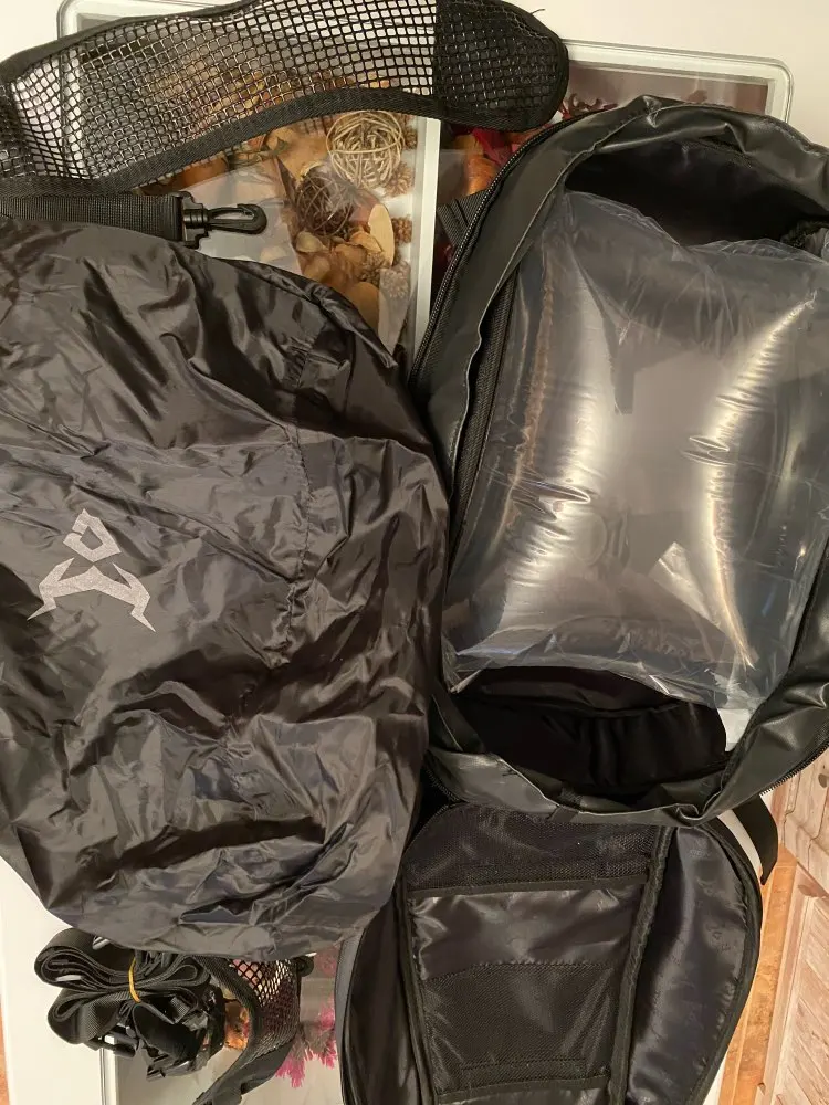 качественная штука очень вместительный. можно носить как рюкзак. имеет 2 регулировки объёма. выглядит лучше чем любой кофр. + есть непромокаемый чехол . упаковано хорошо. пришло за 19 дней