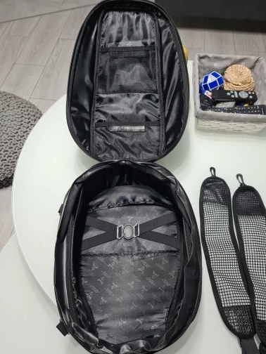 Отличное качество и дизайн, я очень доволен, я знаю, что он разработан в основном, чтобы соответствовать шлему внутри, единственный вариант заключается в том, что его не так практично использовать как обычный рюкзак, потому что он не имеет внутренних отделов или отсеков, поэтому все ваши вещи будут скреплены внутри, в любом случае это отлично подходит для денег. Я думал, что расширение держится на молнии, но оно удерживается 3 ремешками на внешней стороне.