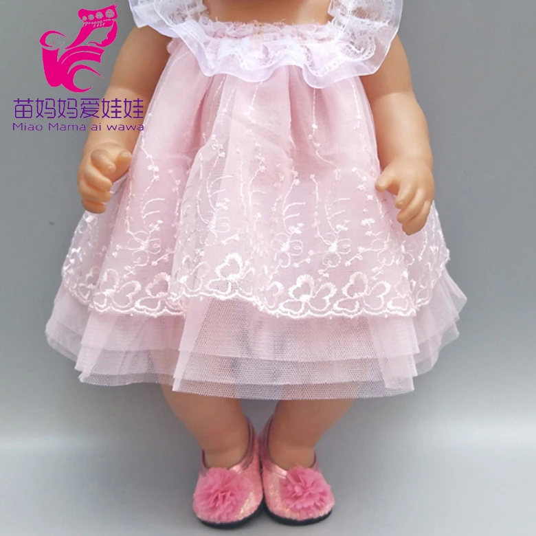 Кукольное платье 43 см, кружевное платье принцессы с вышивкой для новорожденных, с нижним бельем, Одежда для кукол 18 дюймов