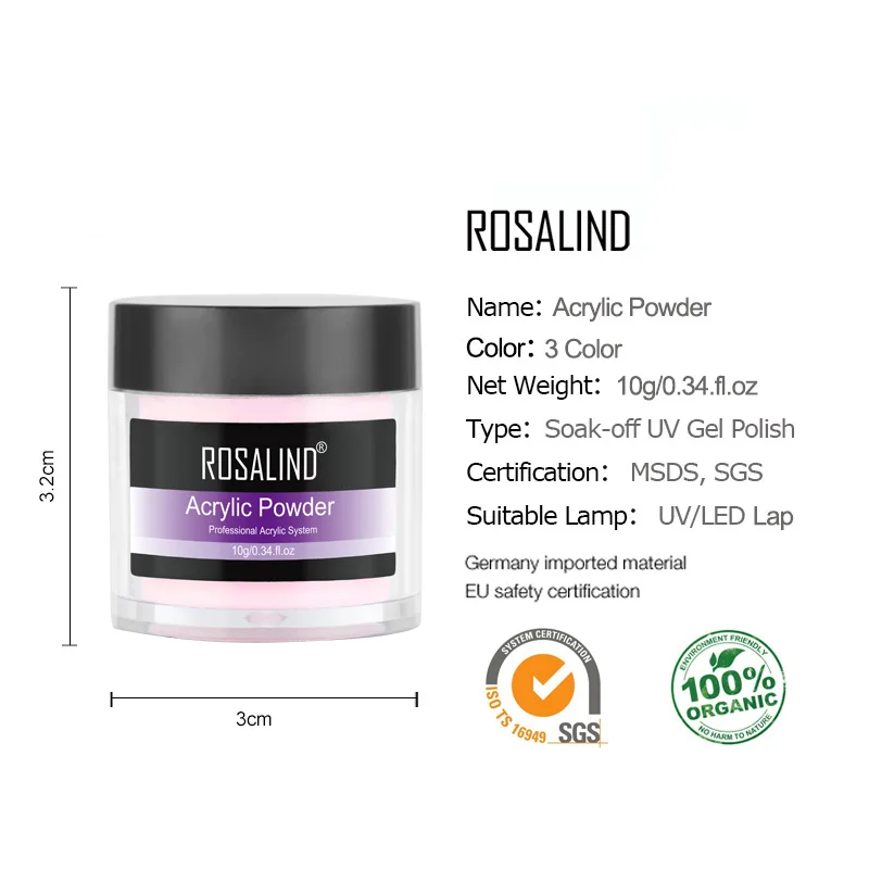 Акриловая пудра для наращивания ногтей ROSALIND, Хрустальный гель для ногтей, декоративный набор для маникюра, профессиональные аксессуары