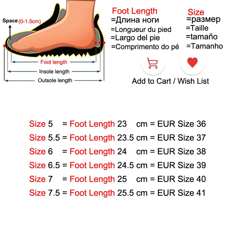 Пожалуйста, измерьте длину стопы, выберите размер в соответствии с длиной стопы.