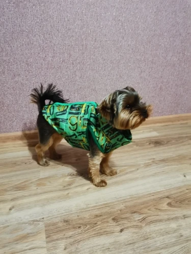 Классная жилетке, на мини Йорка отлично подошла, ворот длинноват, но если до конца не застёгивать - то норм)