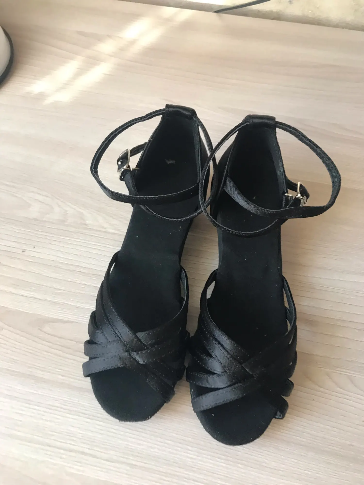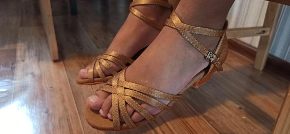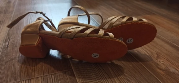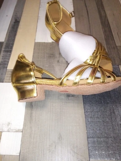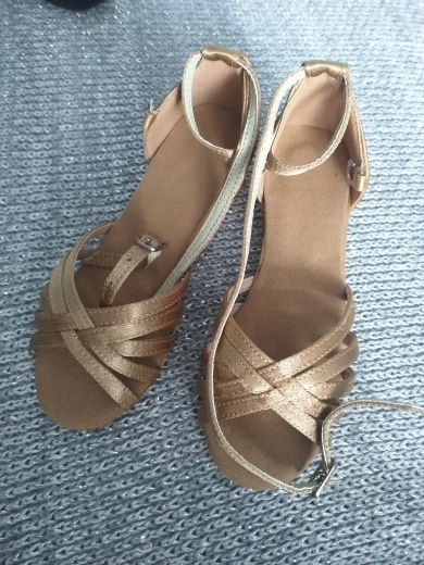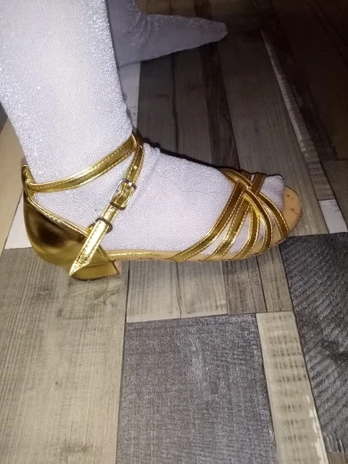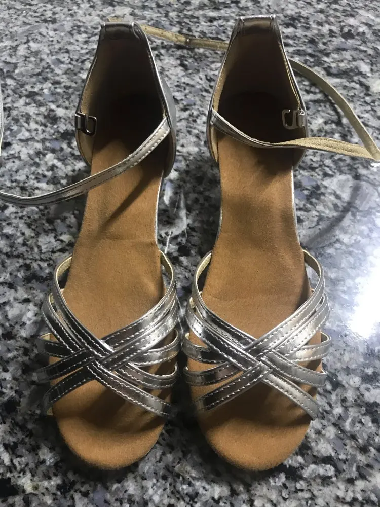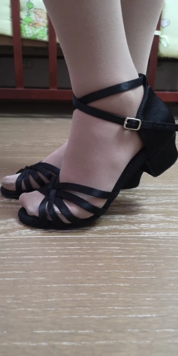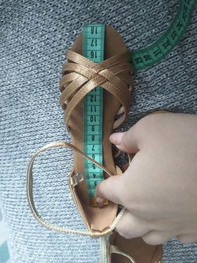 Нормальные туфельки. Маломерят. Заказала на размер больше. Впритык на стопу 18,3 см 19 размер. На узкую ногу. Ничем не отличаются от купленных в магазине для танцев, разве, что дырки на застежке пробиты не по центру, криво. За эту цену просто подарок.