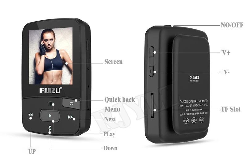 Спортивный Bluetooth MP3 плеер RUIZU X50, оригинальный плеер с 8 Гб, экраном для мини-клипов, поддержкой FM, записи, электронная книга, часы, шагомер