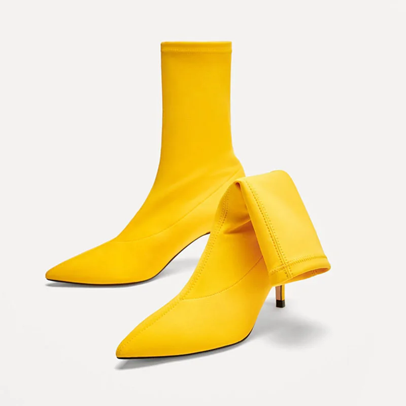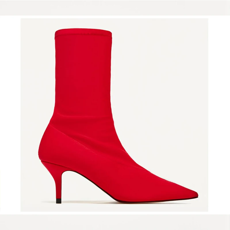 Женские ботильоны из эластичной ткани, на высоком каблуке 2018 см