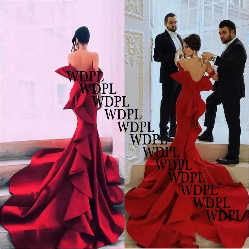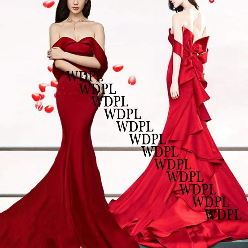 Женское вечернее платье с открытой спиной, красное платье до пола с открытыми плечами и бантом в несколько рядов