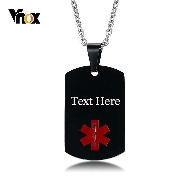 Медицинское ожерелье Vnox для мужчин и женщин, подвеска с бесплатной гравировкой на заказ, диализное ожерелье при диабете, варфарине, кардиостимуляторы