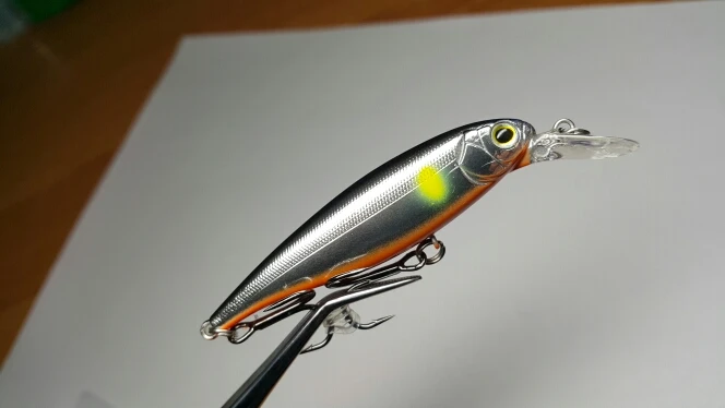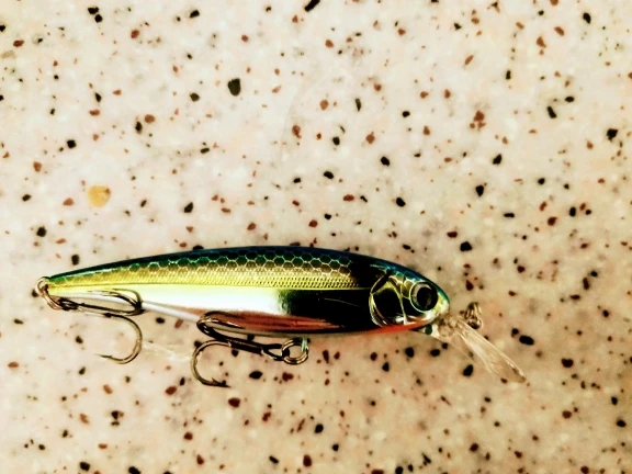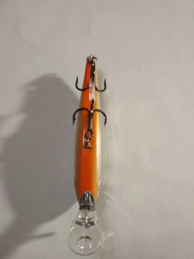 Приманка выглядит хорошо. Он соответствует описанию размера и веса, и выглядит твердым. Крючки острые и кольца достаточно прочные для блеска этого размера.