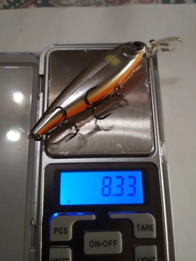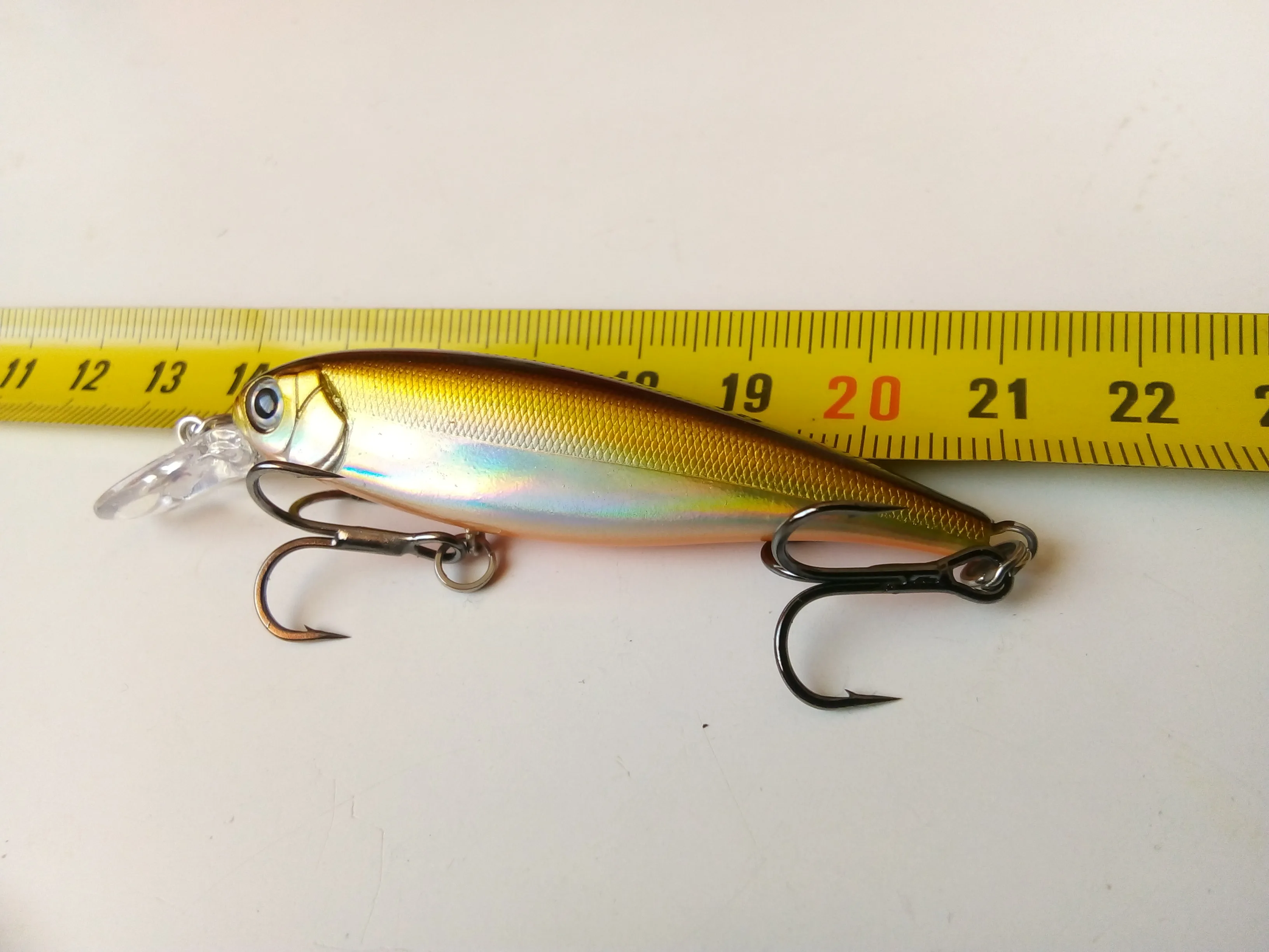 Когда Заказывал в качестве уже не сомневался потому что магазин знаком. Что касается воблера - исполнен качественно, крючки липнут, клеить ничего не нужно, с новым кольцом весит 8,21. Без носового кольца 8,03. внешне выглядит как симпатичный, пузатый малек. Заказывал 70-й.