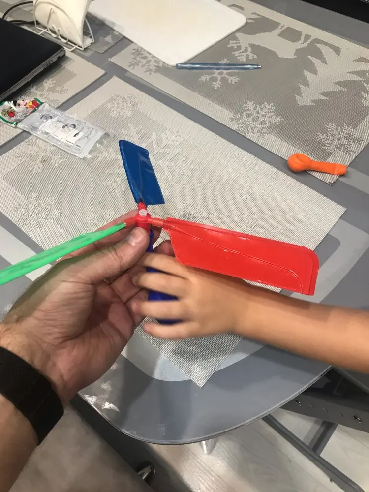 Заказ получил через 23 дня, после заказа. Заказывал с отслеживанием. Шарик заставить летать, очень сложно, получилось запустить пару раз. Пытались заменить на более большой шарик, но за счёт более большей горловины, воздух не поступает в лопасти. Поначалу, ребенок был счастлив, потом огорчился. Надувать шарик тоже крайне не удобно. Наловчились Надувать через отверстие под пищалку. Но лопасти быстро поотклеились, пришлось сажать их на момент. Одним словом, игрушка интересная, но ненадолго.