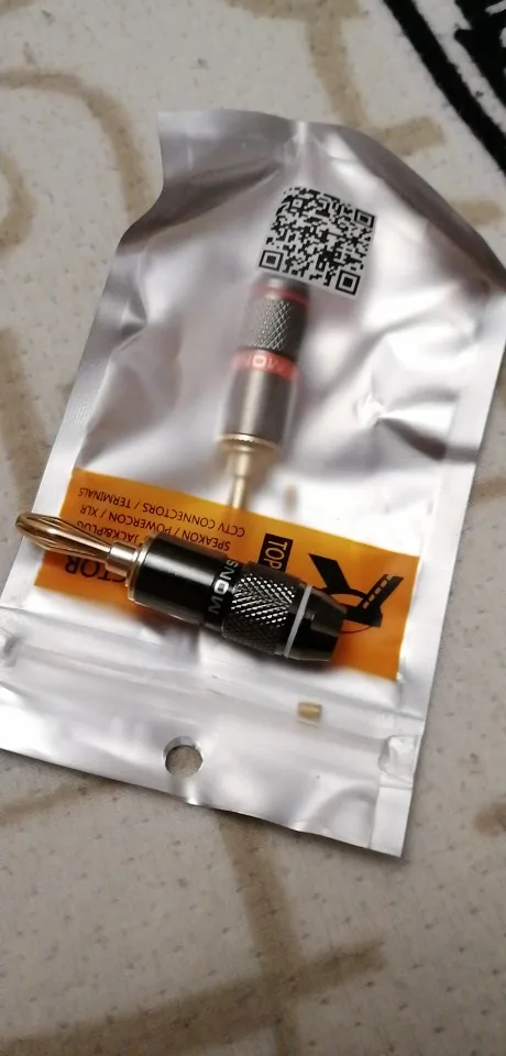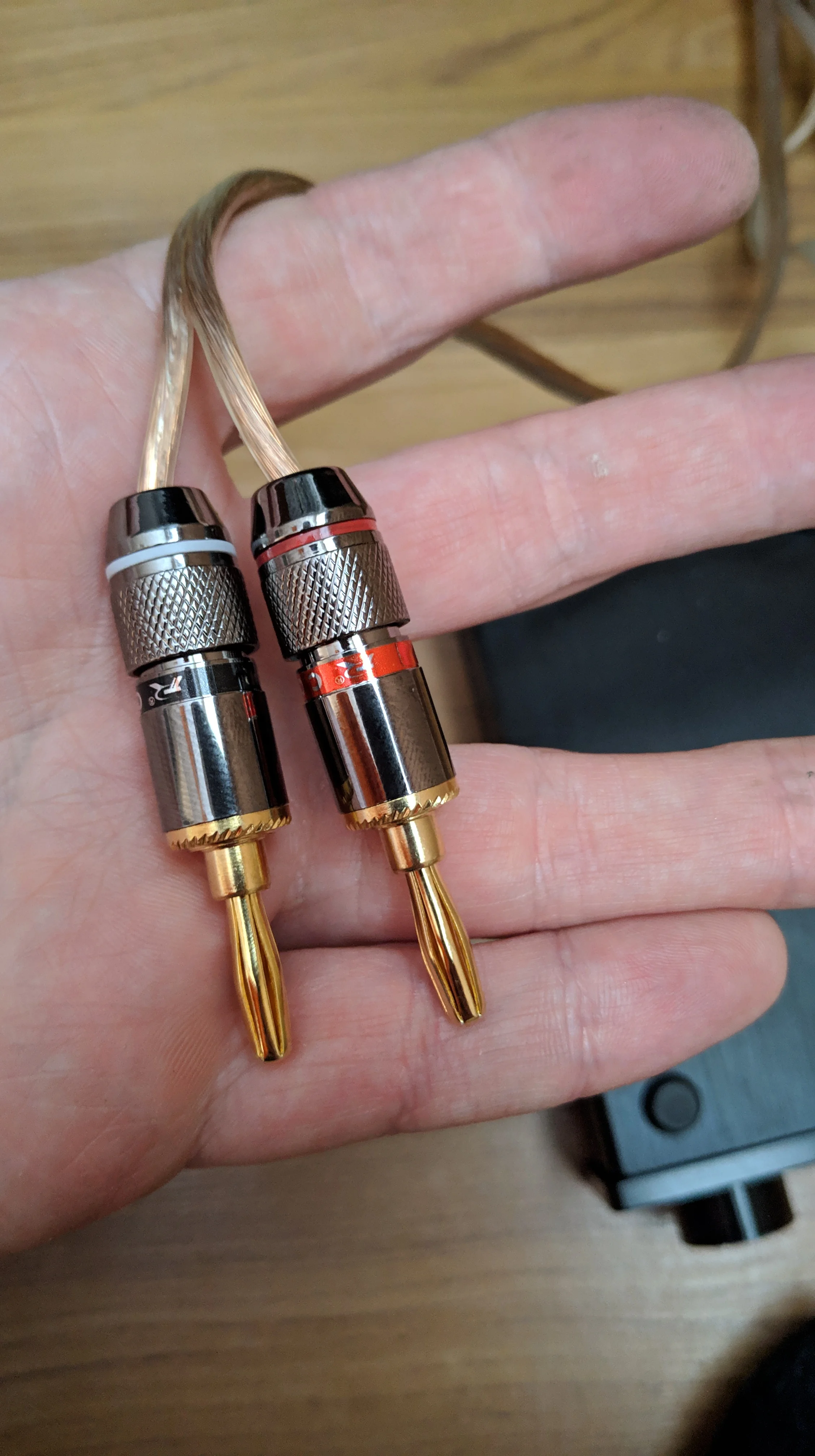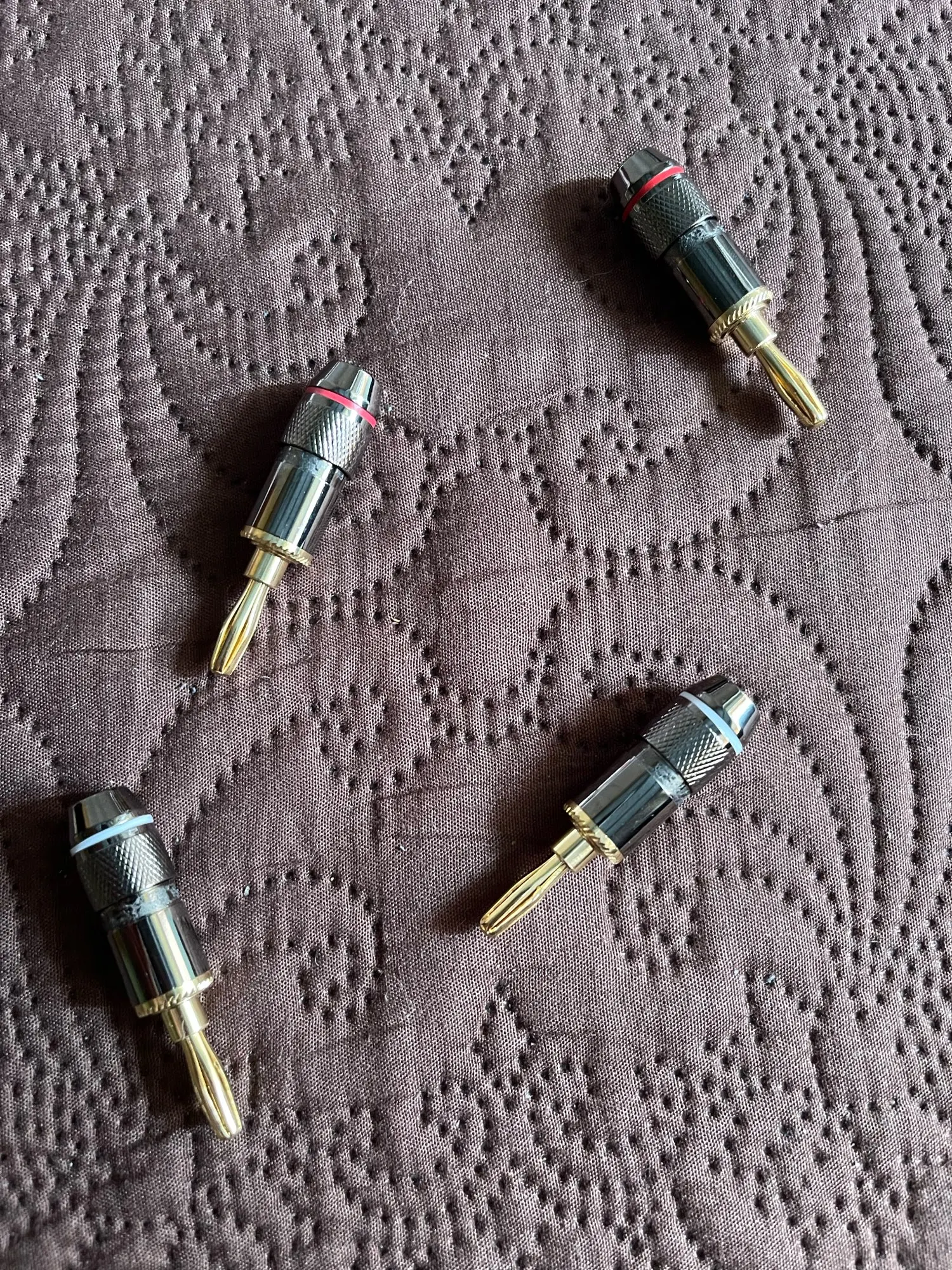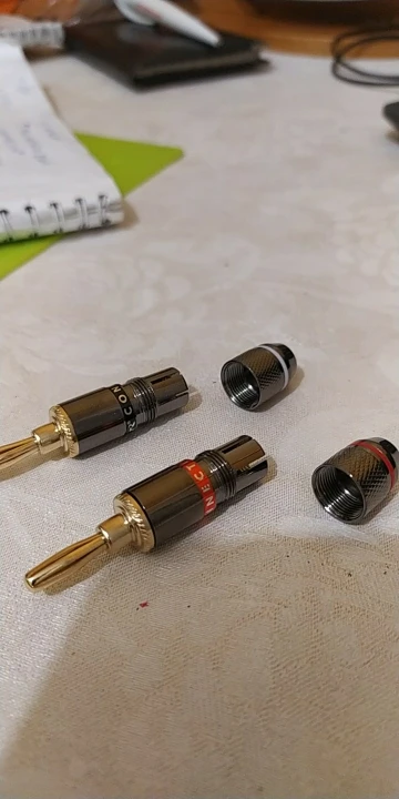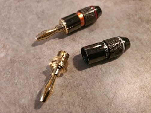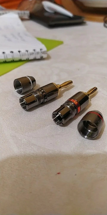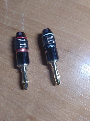 Суперские бананы, взял для быстро съема, для сабвуфера в машине, на провод альфард 4 кВ подошёл не плохо, зажим на провод с помощью винта, и выглядит по сравнению с некоторыми дорога богата, есть цанга для фиксации наконечника за внешнюю изоляцию, но мой провод не подошёл по диаметру внешней изоляции , держится только за жилы
