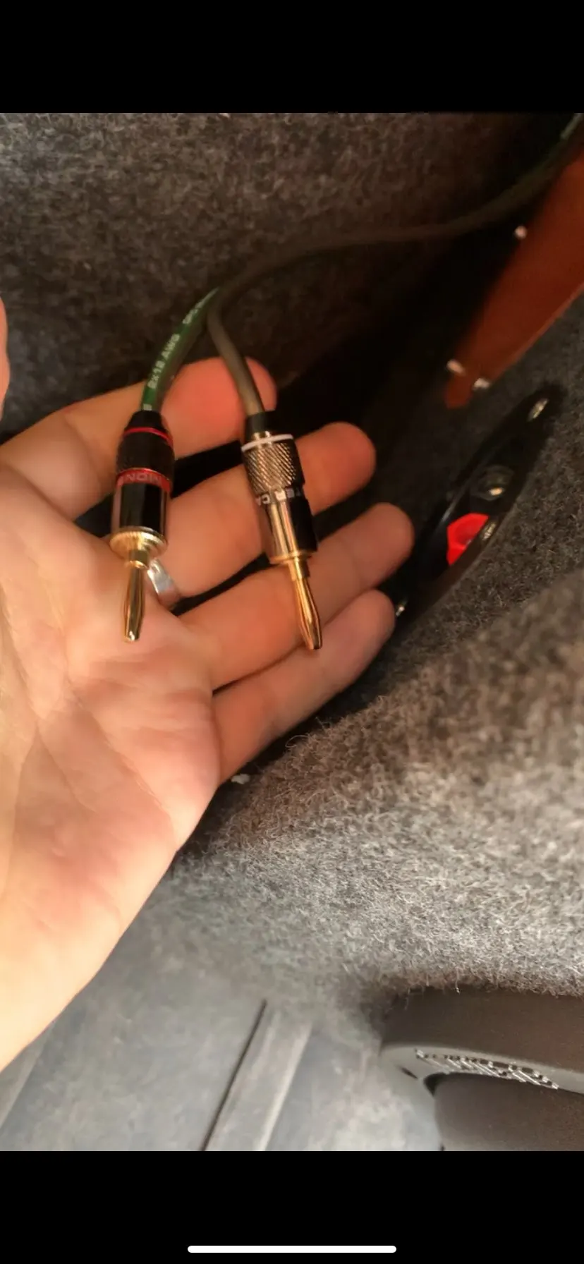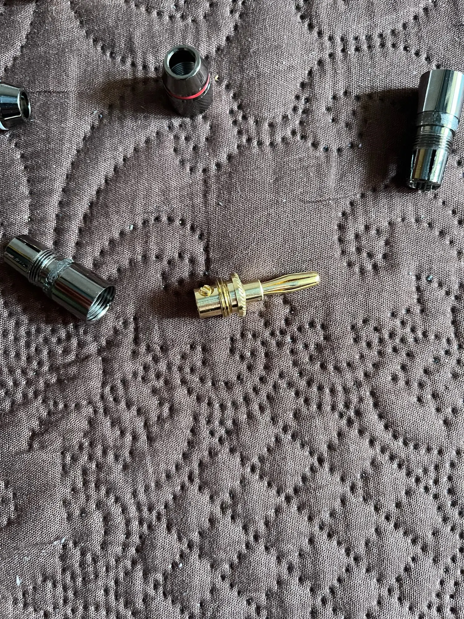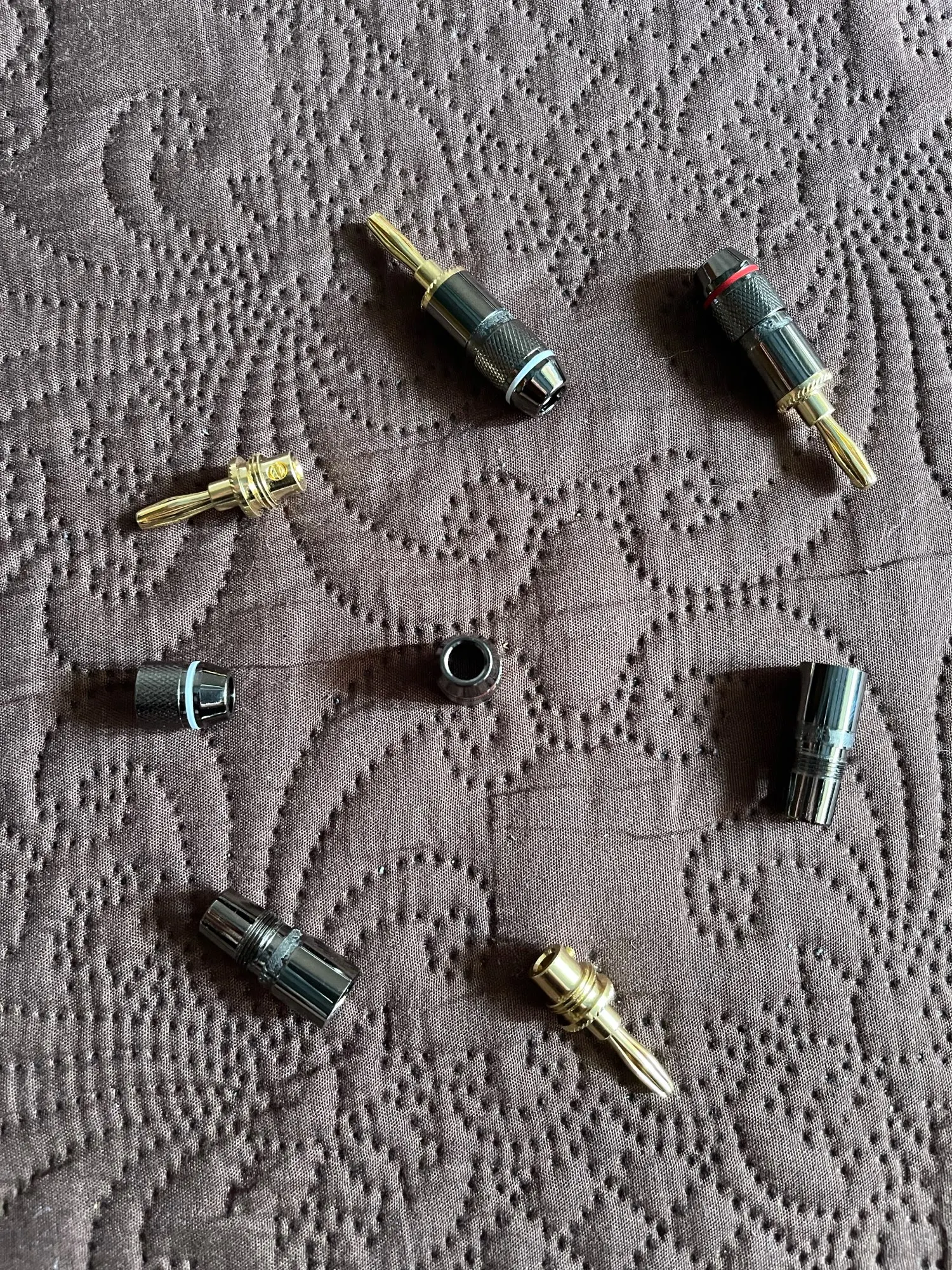 Суперские бананы, взял для быстро съема, для сабвуфера в машине, на провод альфард 4 кВ подошёл не плохо, зажим на провод с помощью винта, и выглядит по сравнению с некоторыми дорога богата, есть цанга для фиксации наконечника за внешнюю изоляцию, но мой провод не подошёл по диаметру внешней изоляции , держится только за жилы