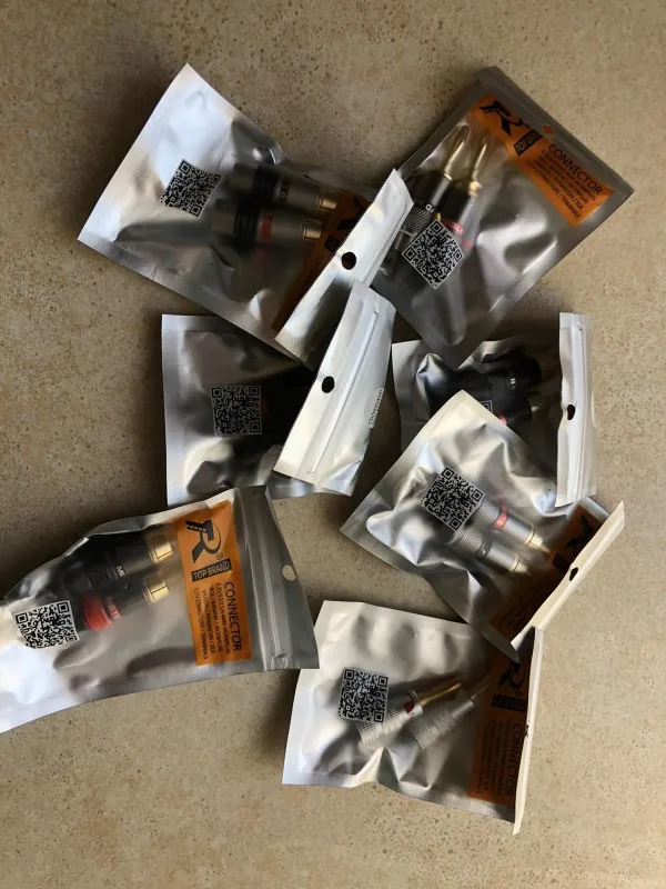 Мне нравятся эти разъемы, они, кажется, не покрыты золотом, выглядят больше как полированная латунь. Мне пришлось почти сразу взять ремни, с которыми они отмечены (белые и красные), они просто не прилипают к металлическому корпусу. Доставка не занимает слишком много времени.