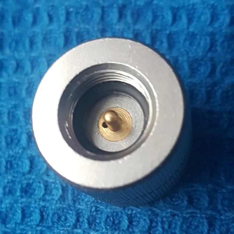ok. Переходник с резиновыми уплотнителями внутри. Газ переливать можно, но не очень удобно подключать-отключать без вентиля. Быстро открутить сразу два баллона -- проблематично. Зато компактный. При столь большом внешнем диаметре, к пластиковому чёрному переходнику на цанговый баллон из магазина "сплав" не подходит -- упирается в пластик переходника при попытке привинтить. На металлический переходник накручивается без проблем.