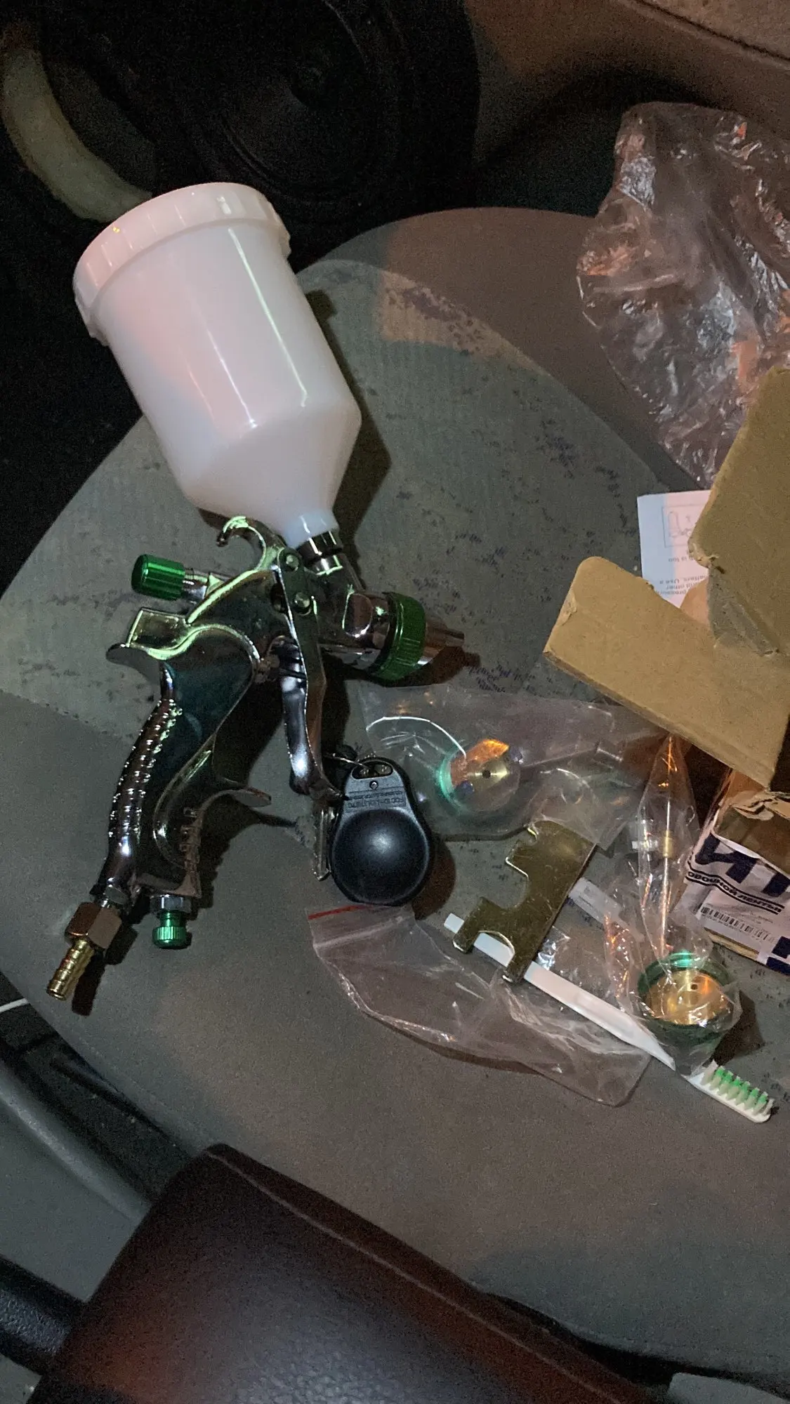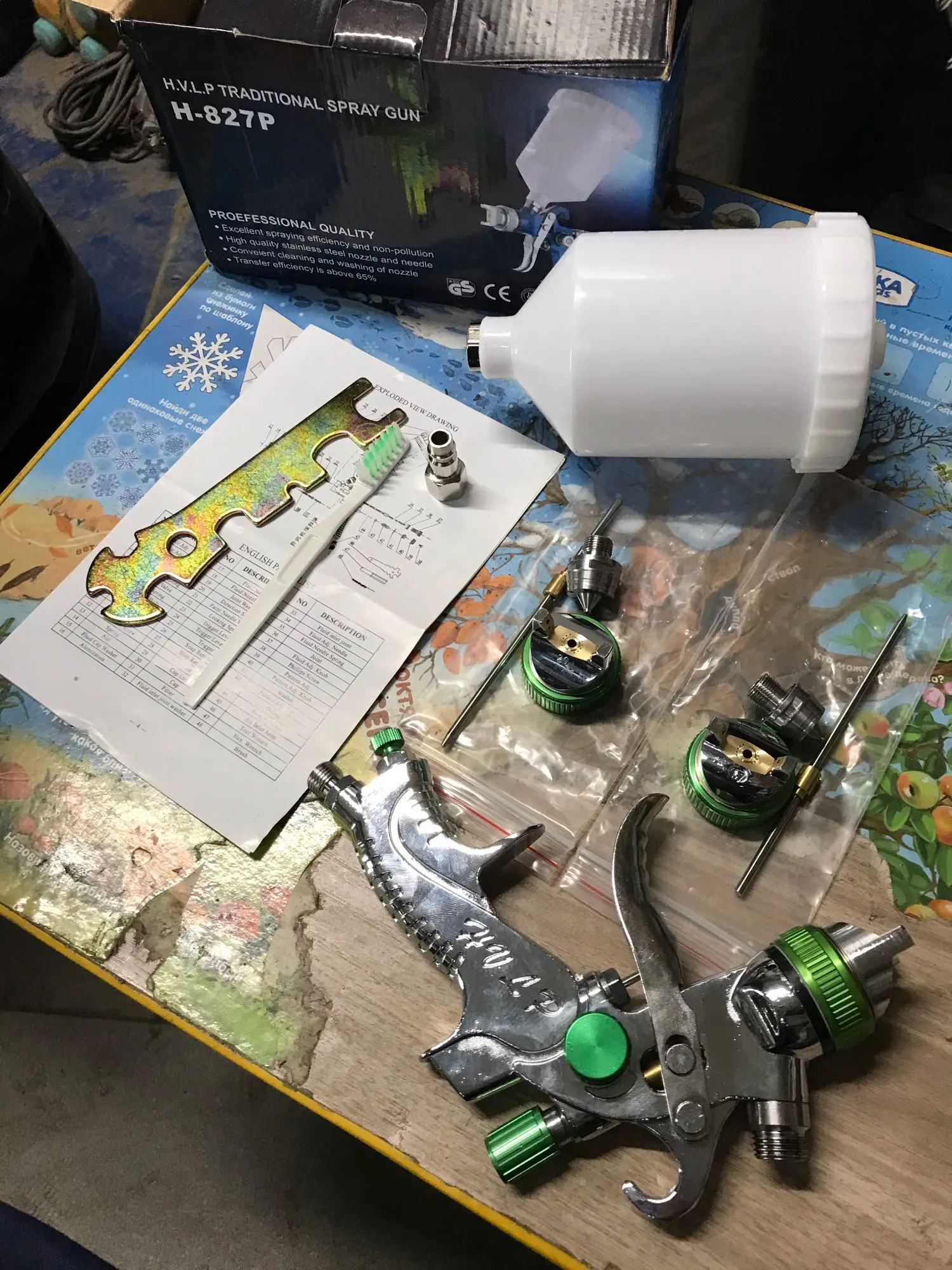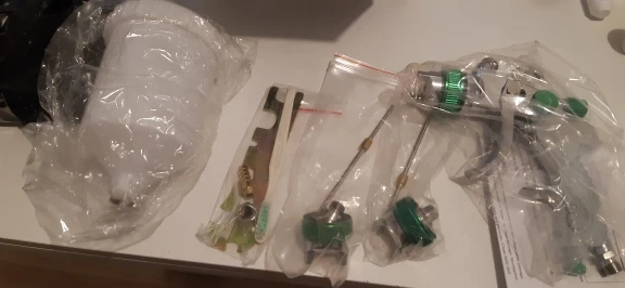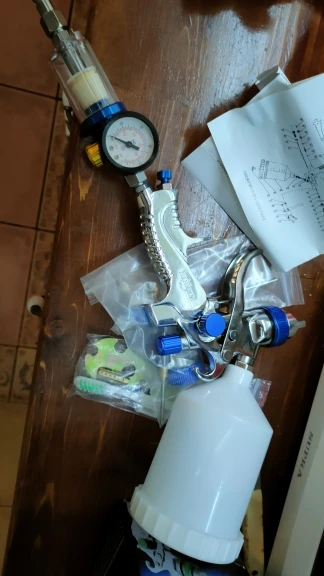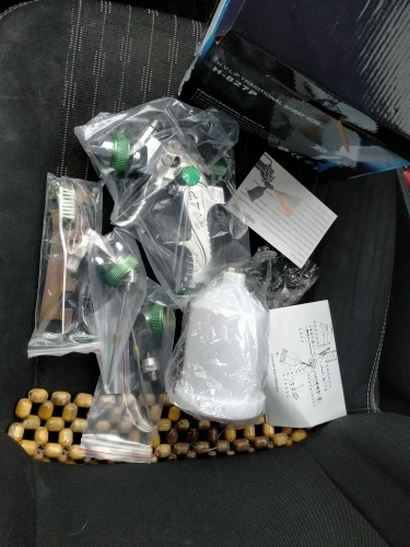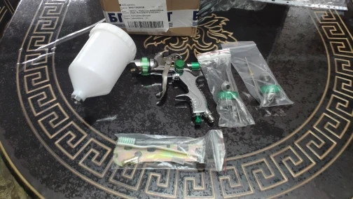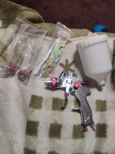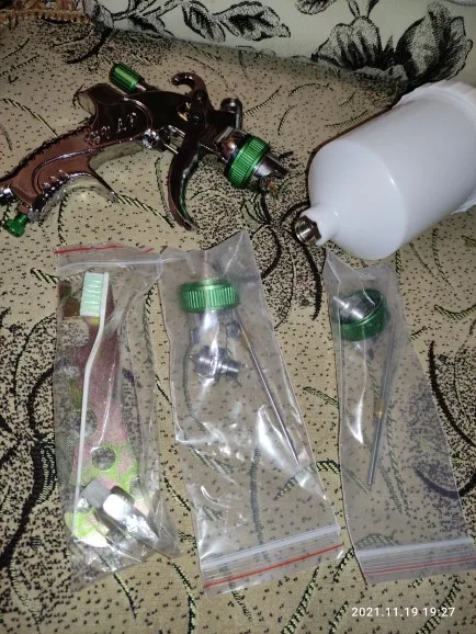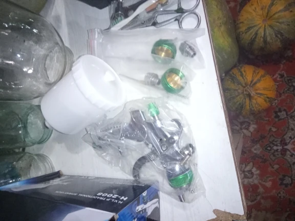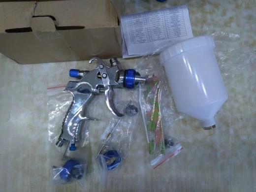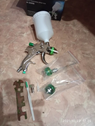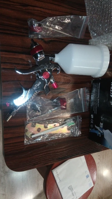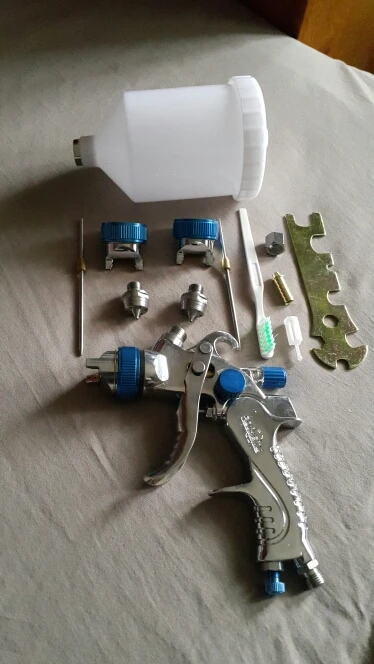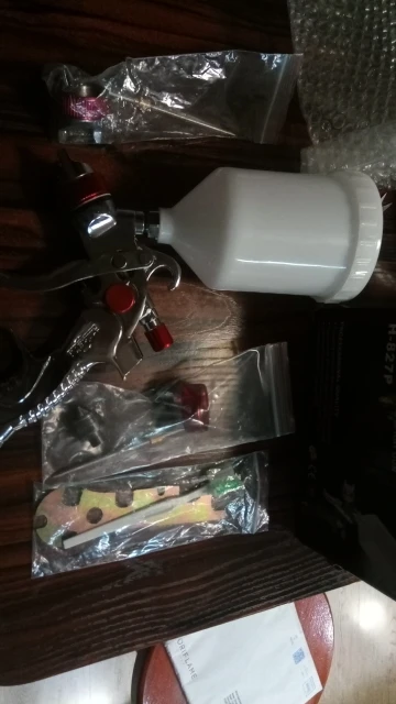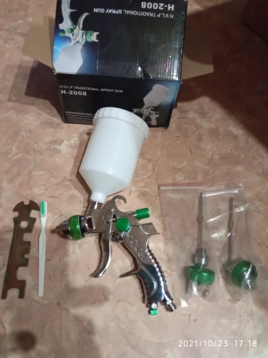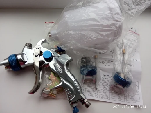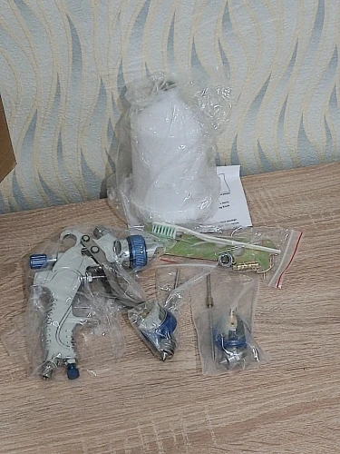 На вид отличный, качественный краскопульт! С 3мя насадками. В комплекте ключ для разборки и всякие мелочи. В любом случае, у нас в магазинах за эти деньги ничего подобного не найти! Ещё и 3мя сменными соплами. В общем я доволен покупкой! Доставка из России до моего региона(32) всего 5 дней, доставка курьером до двери! Рекомендую к покупке!