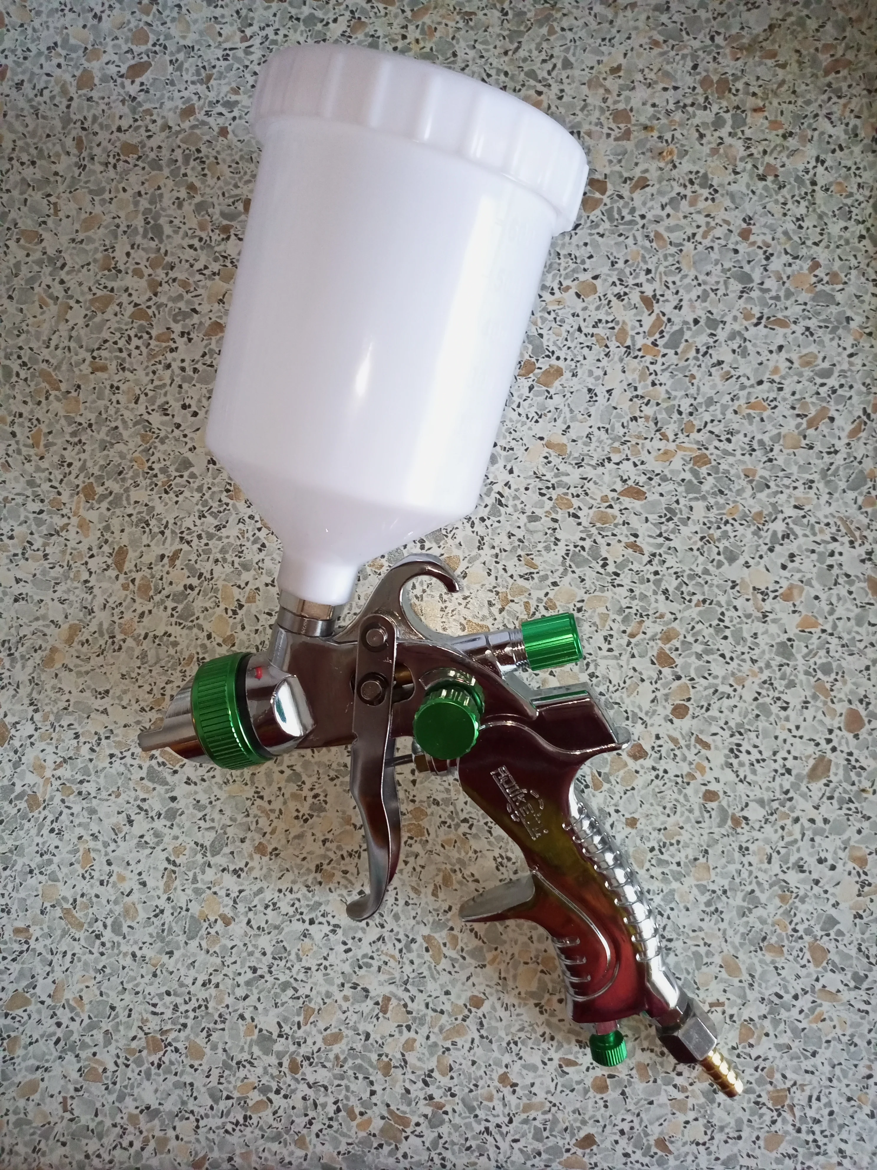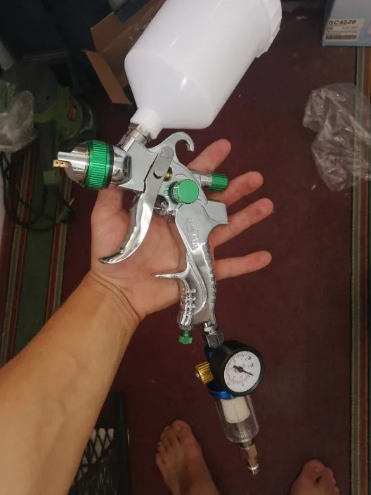 Сравнивая с ауритой или войлет - пистолоет слегка проигрывает в качестве литьевого исполнения, факт. Курок сам по себе потоньше, но это тонкости оформления. Дюзы вроде бы аккуратно, токарка, обработка. Распылители тоже вопросов не вызвали. Принесли домой. Я "не настоящий сварщик" (анекдот), сам крашу ауритой, войлет и Walcom, посмотрим на него в бою, но не надо забывать цену!!!! За его цену ему можно простить все. Регулировка ширины факела мягкая, подача туговата. Воздух -резьба надо докупить переходник.