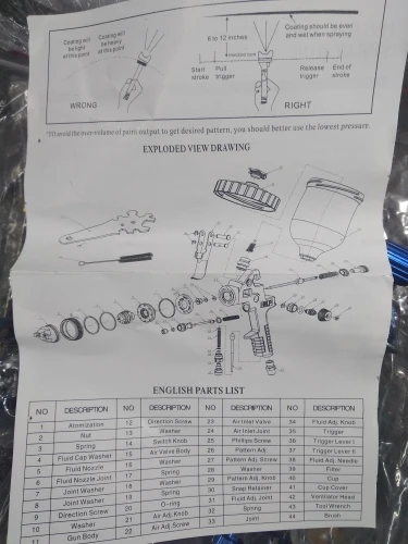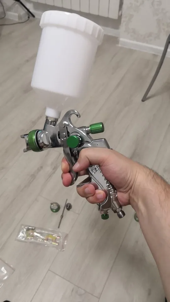 Очень быстрая курьерская доставка до дома. Краскопульт с виду качественный. Винты регулировки вращаются. Воздушные дюзы не забиты. В работе ещё не пробовал. Продавца и магазин рекомендую....