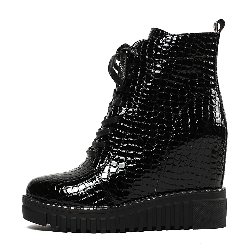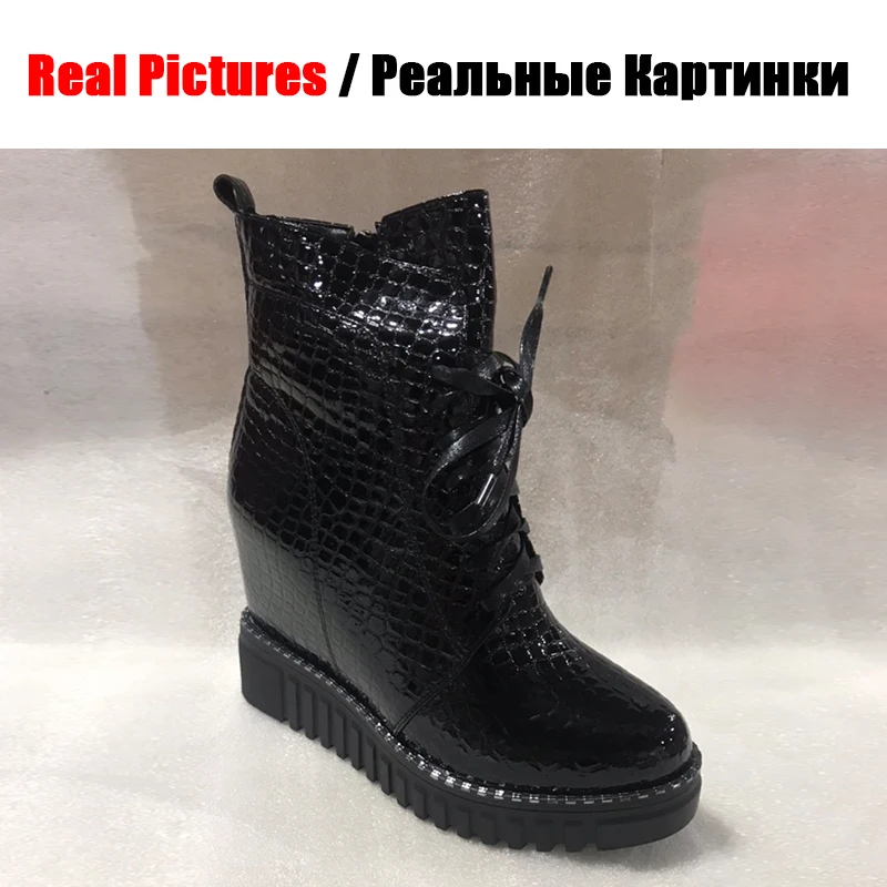Модные ботильоны из лакированной коровьей кожи на платформе; Женская обувь в западном стиле с узором; Сезон осень-зима; Женская обувь, увеличивающая рост; 32-40