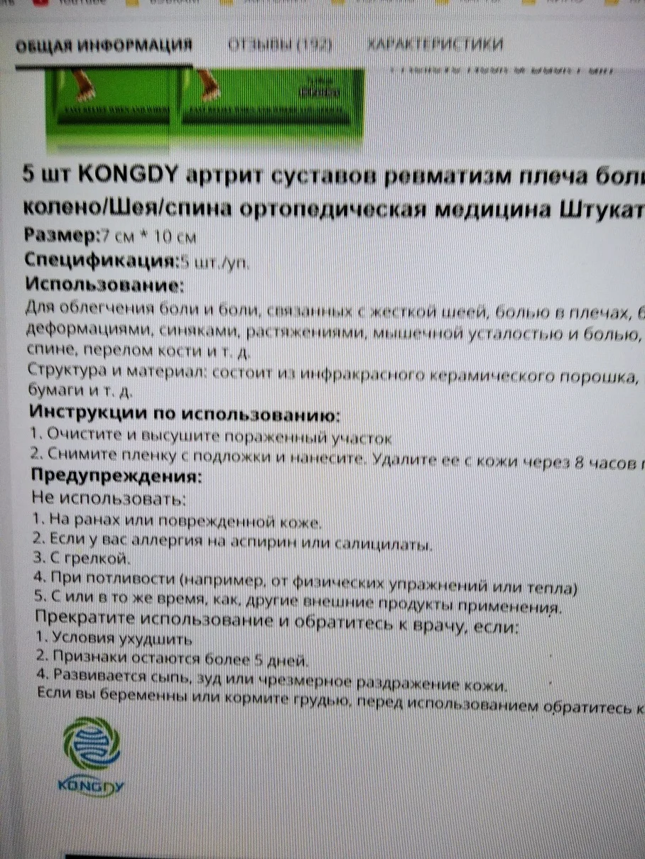 Пластыри нравятся. Инструкция и описание на русском, только похоже для всех одинаковая ( не понятно - чем отличаются от других). Шли очень долго , около 3 мес. Продавцу спасибо, за то что сам отслеживал и продлил защиту.