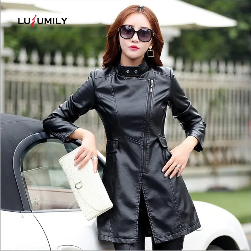 Lusumily осенне-зимняя кожаная куртка большого размера 5XL Женская Модная приталенная Высококачественная мотоциклетная куртка из искусственной кожи Длинная женская куртка