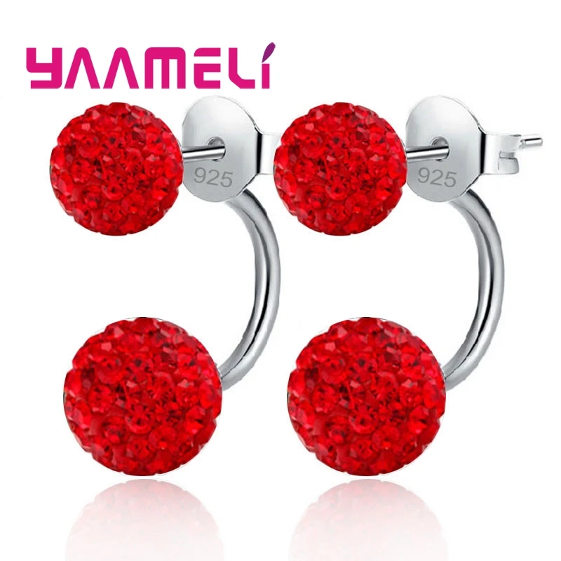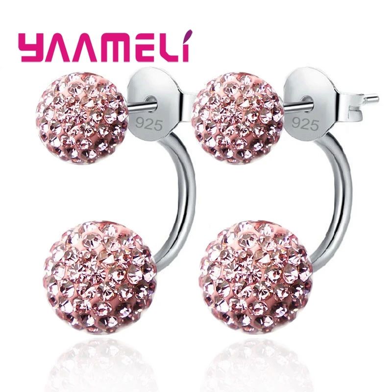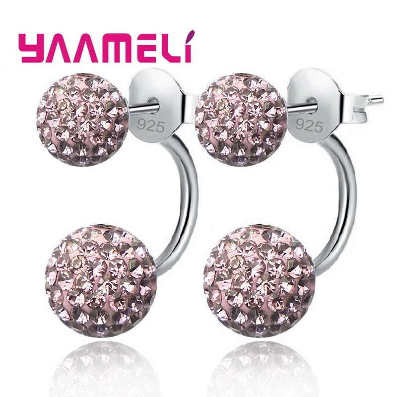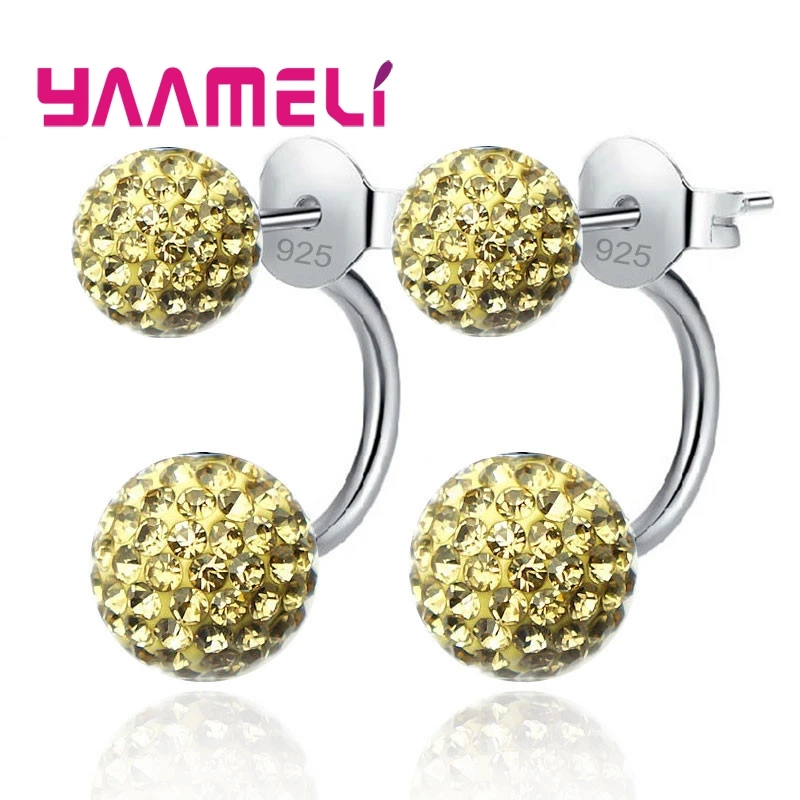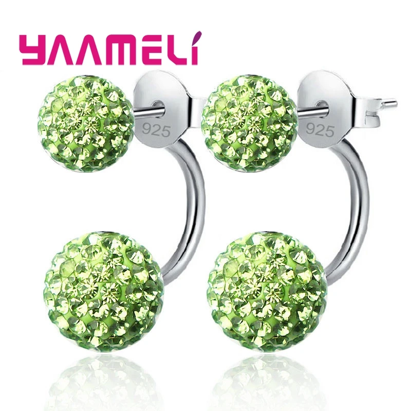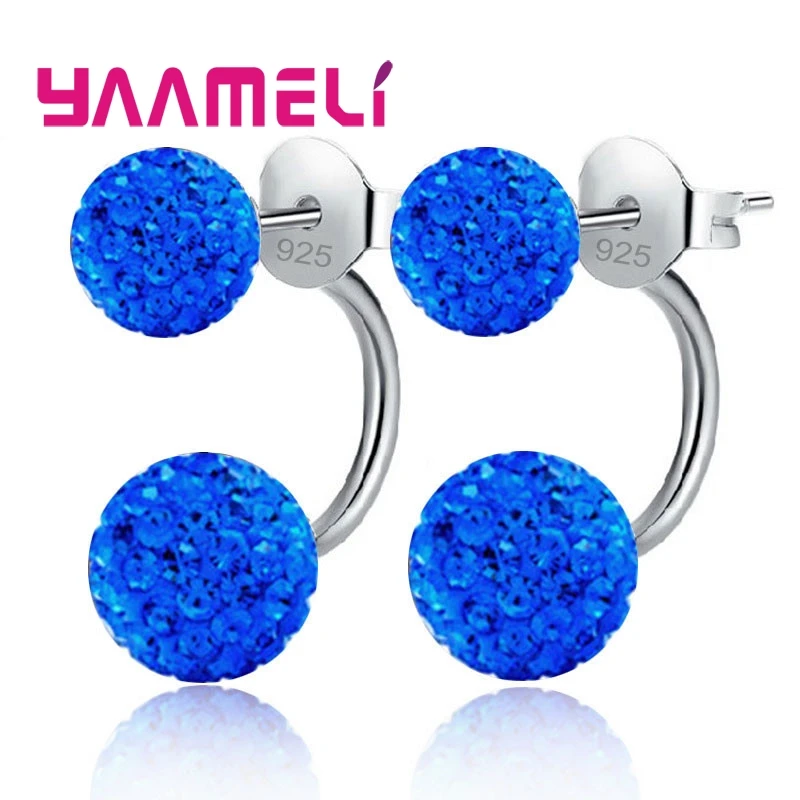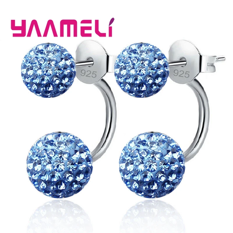 11 цветов на выбор! Женские серьги-гвоздики из австрийского CZ проложенный кристаллами, ювелирные украшения из серебра 925 пробы с двумя дискотеками